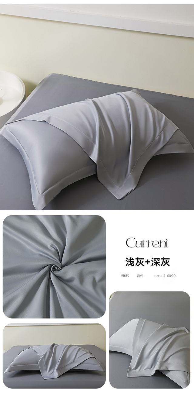 商品名称:多乐家纺 2025新款水洗冰丝真丝纯色双拼枕套 浅灰+深灰