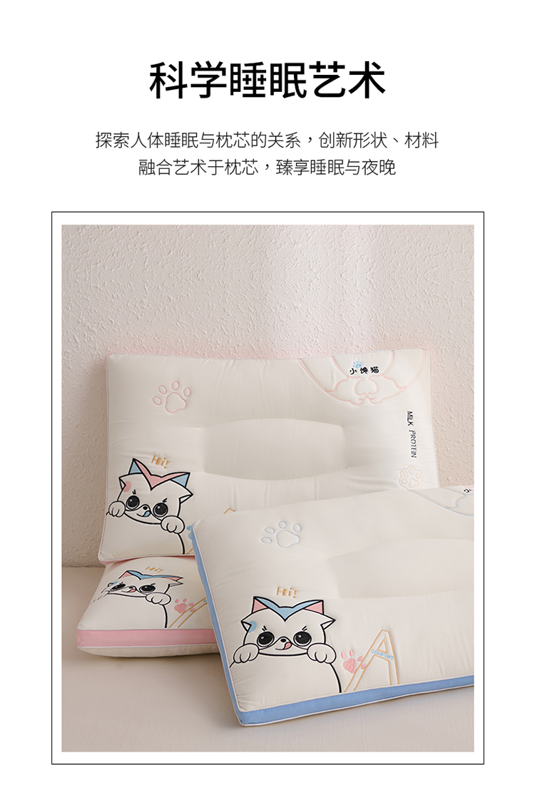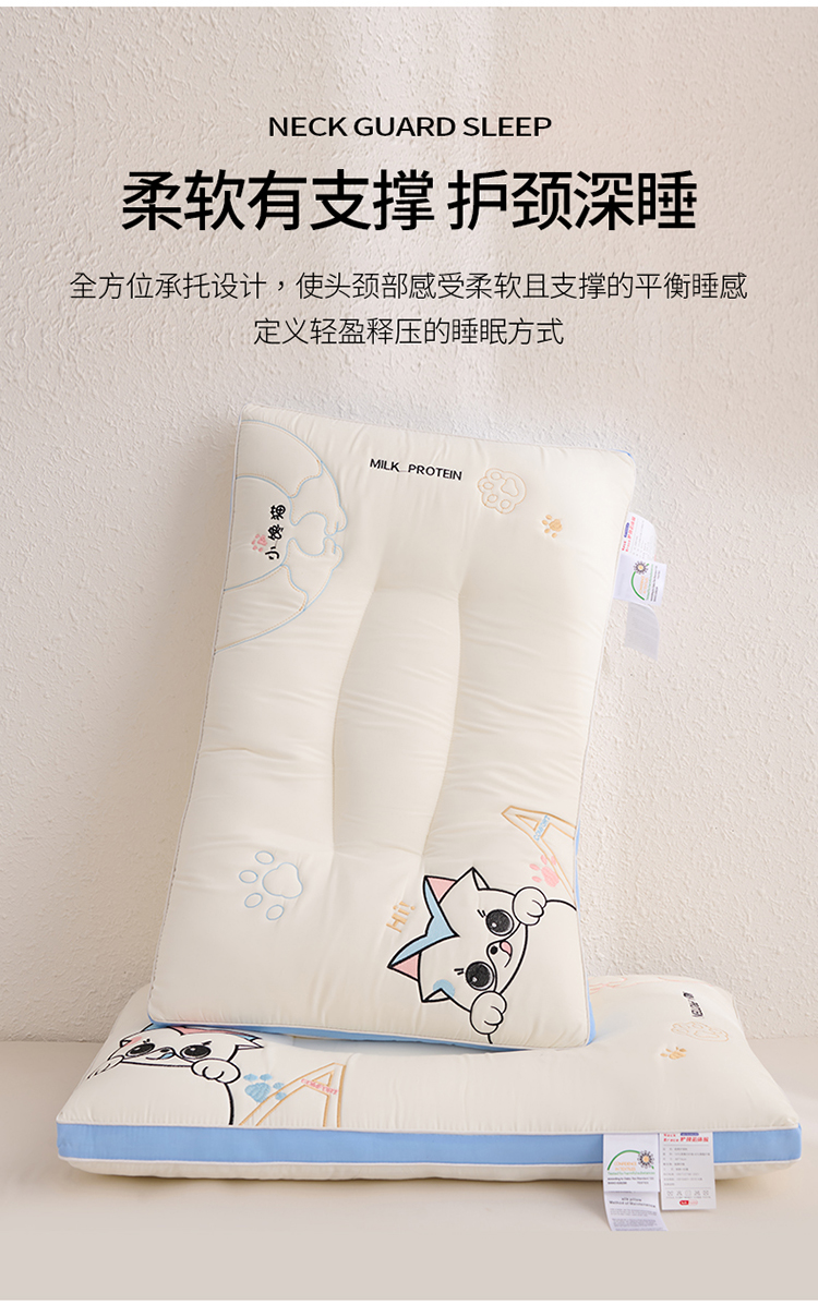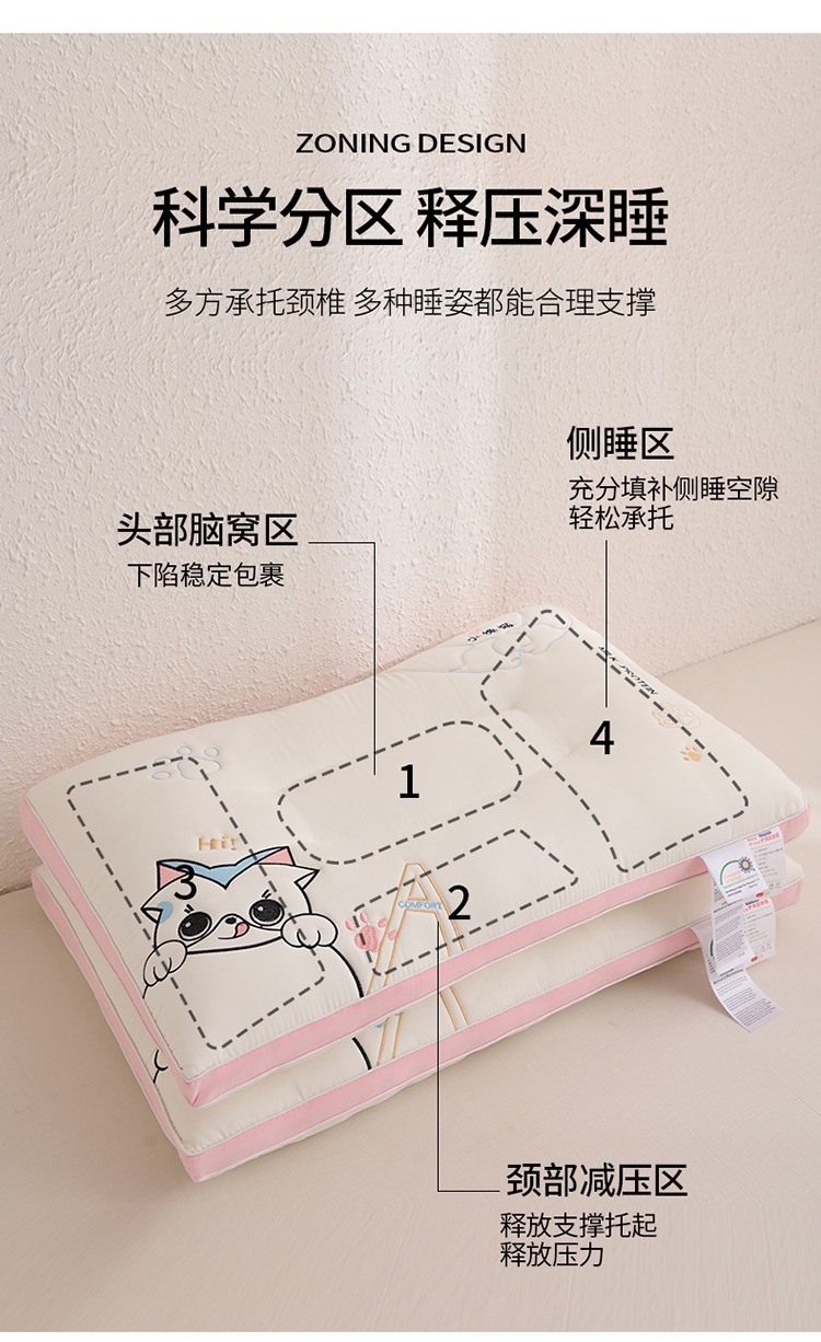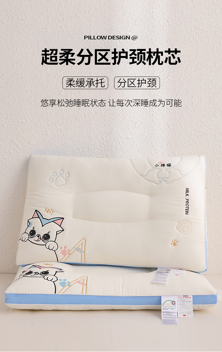 商品名称:(总)幸运草 2025新款小馋猫枕头超柔分区护颈枕 四季通用学生宿舍专用枕芯48*74cm