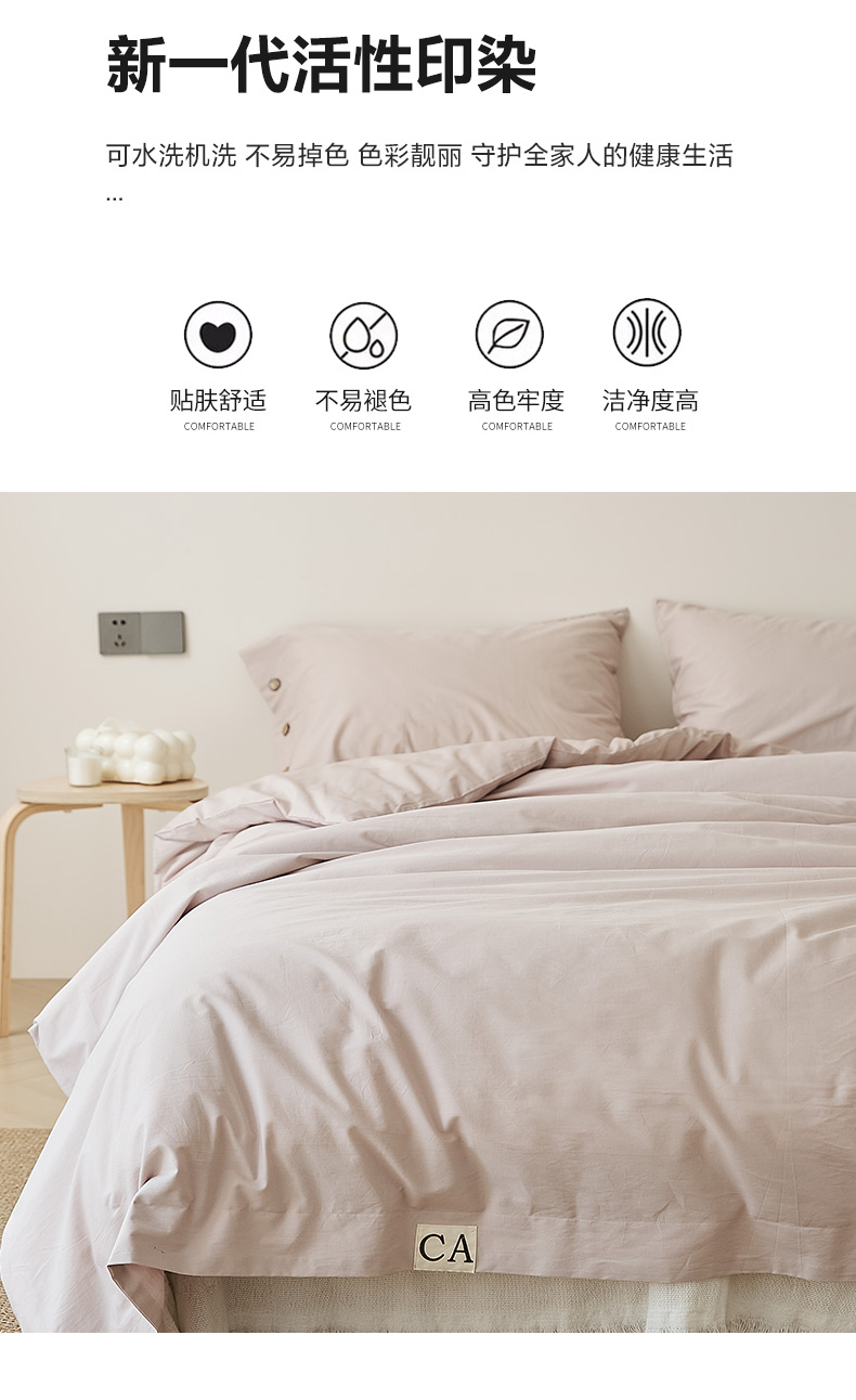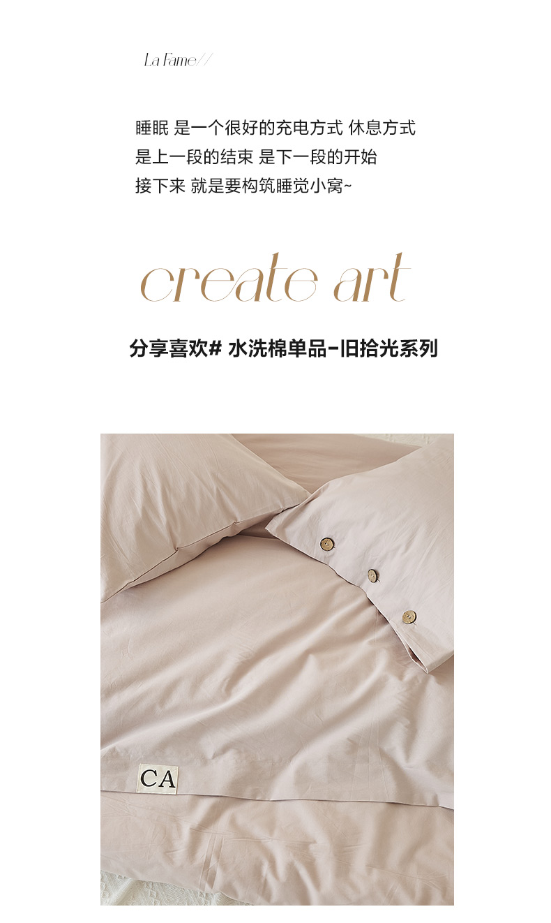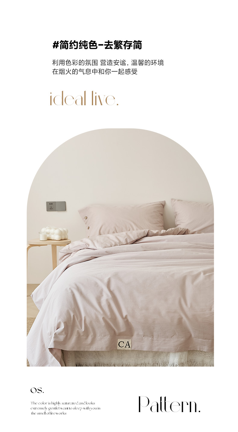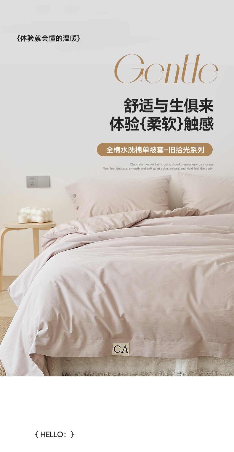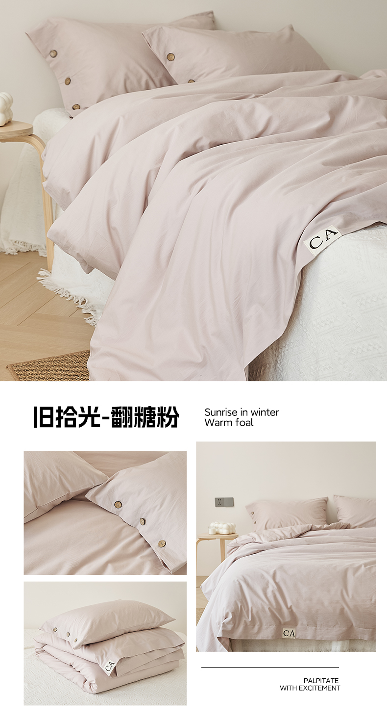 • 91家纺网 家纺一手货源 找家纺 EH家居 2025新款旧拾光系列全棉水洗棉单品被套 旧拾光-翻糖粉