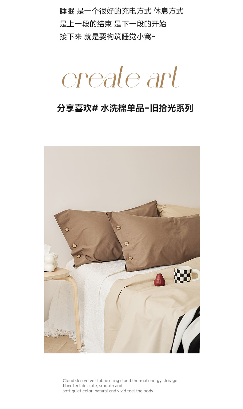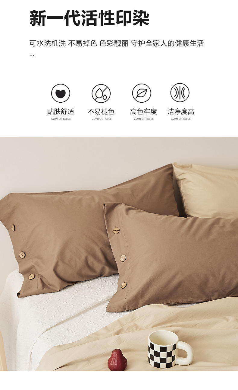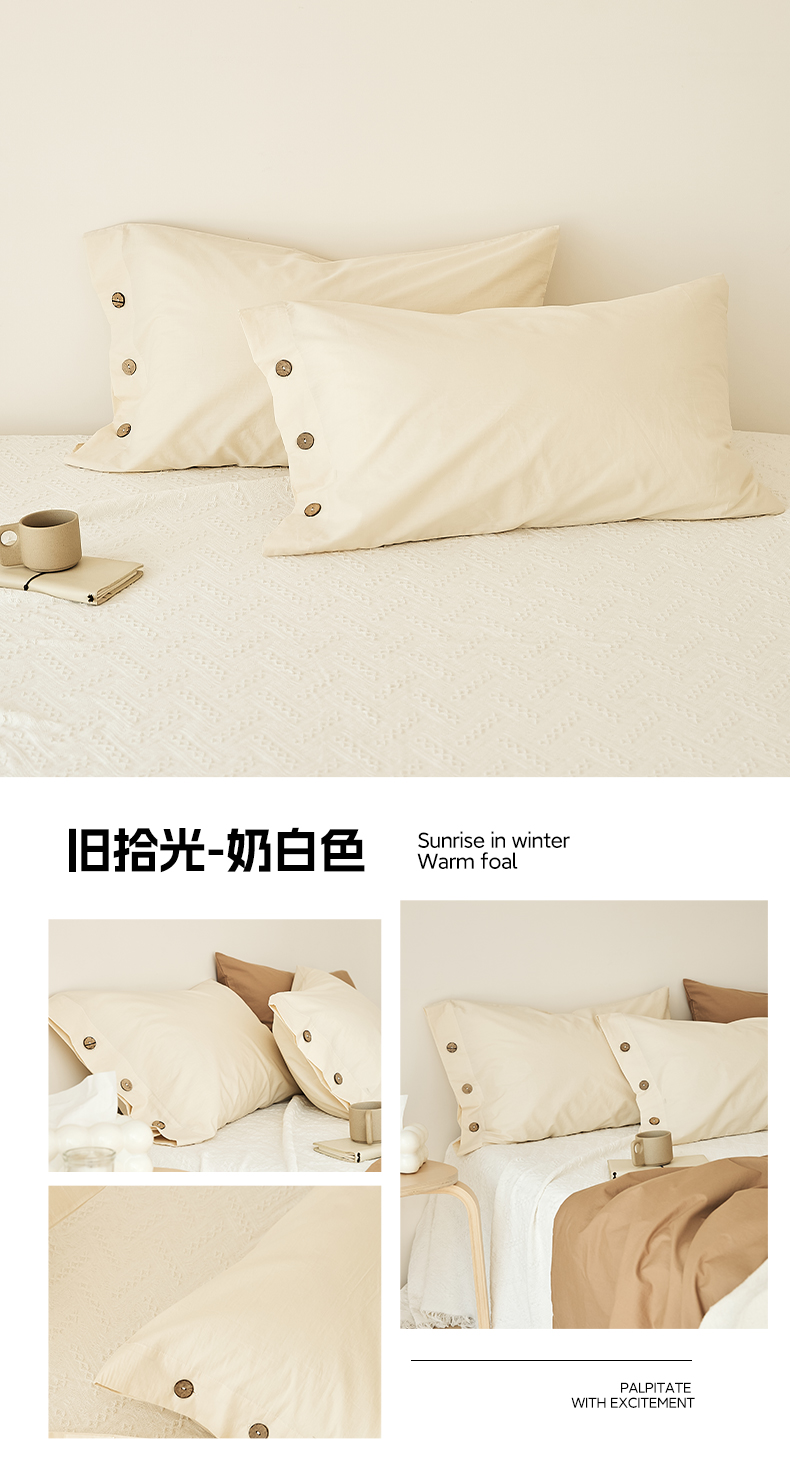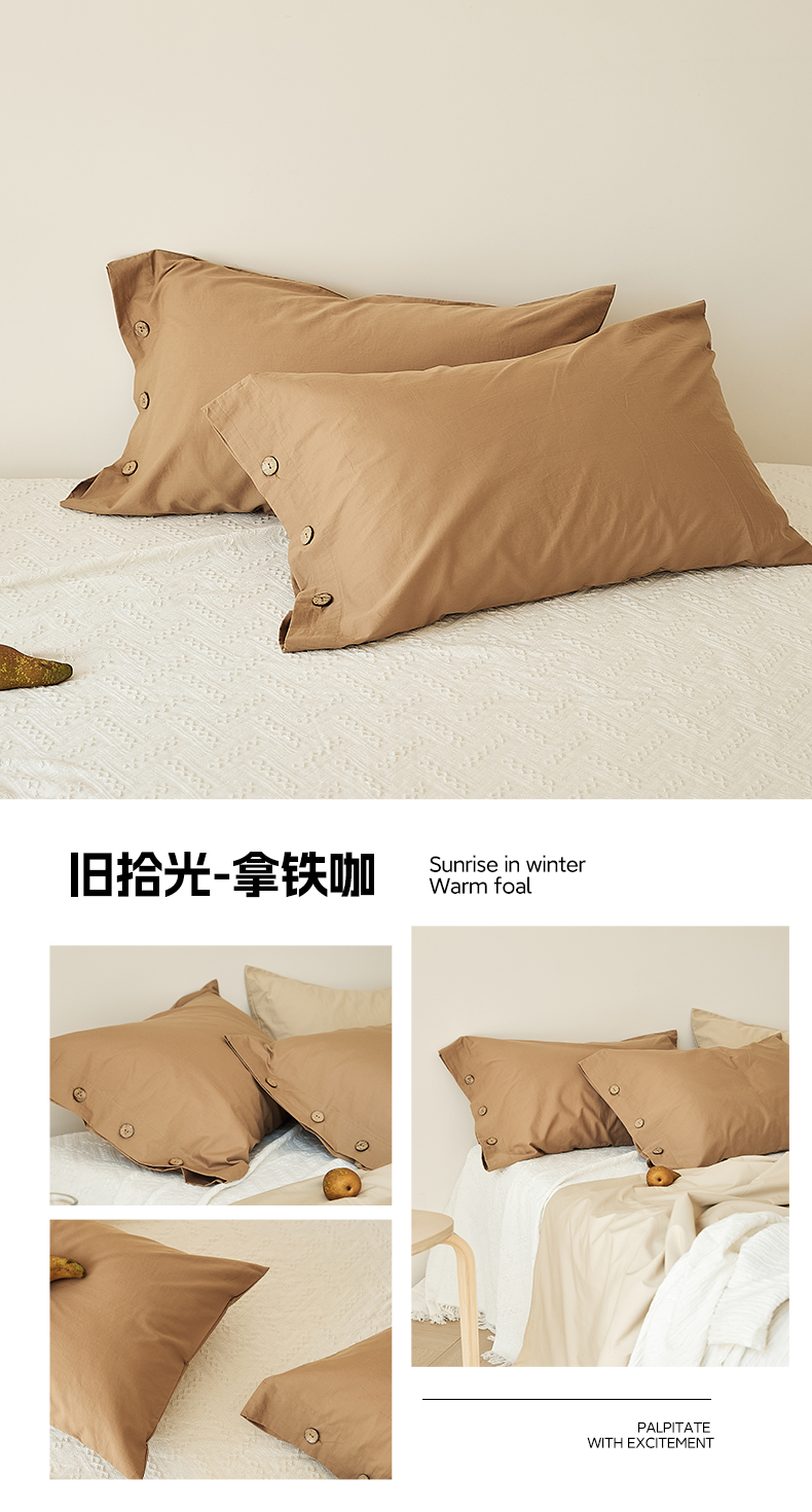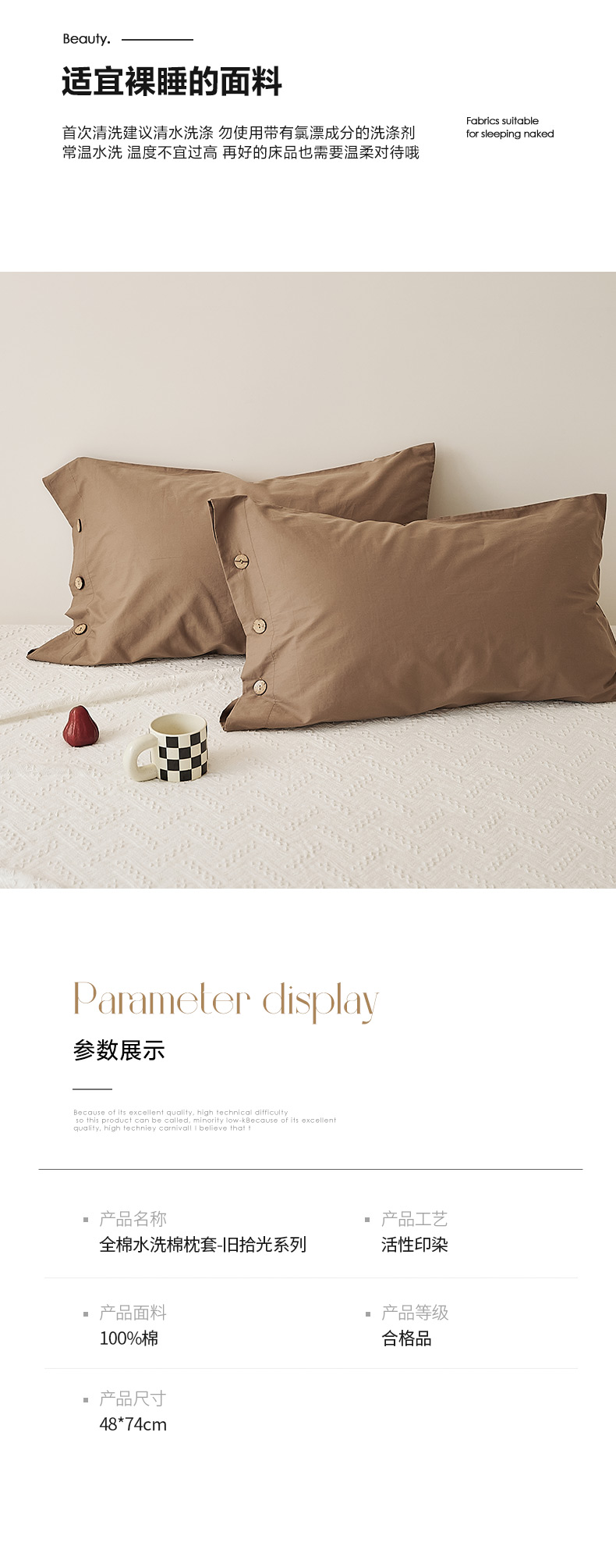 商品名称:EH家居 2025新款旧拾光系列全棉水洗棉单品枕套 旧拾光-巧克力棕