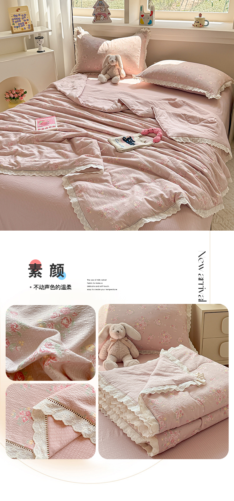 商品名称:芯贝儿 2025新款全m花边木m邹邹双层纱水洗m夏被四件套 素颜