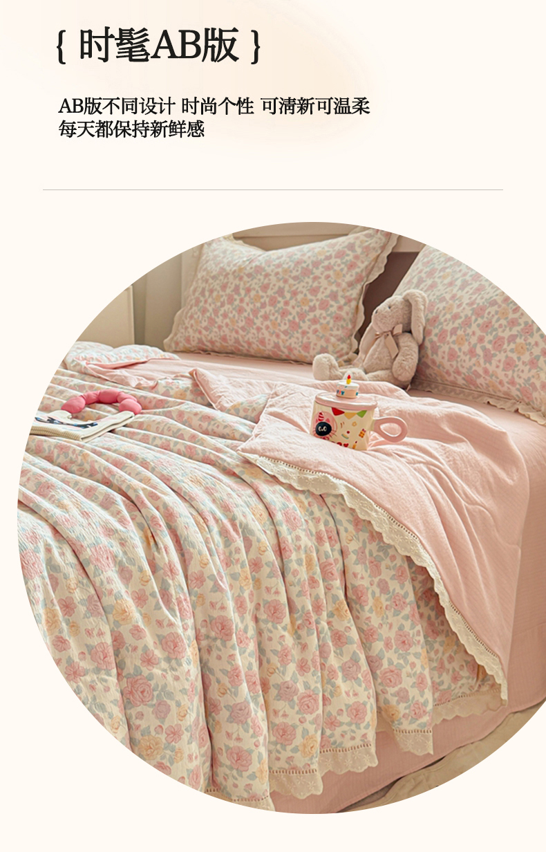 芯贝儿 2025新款全m花边木m邹邹双层纱水洗m夏被四件套 素颜