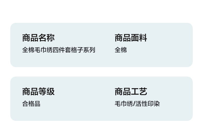 商品名称:美乐迪家纺 2025新款全棉毛巾绣四件套格子系列 甜筒喵星