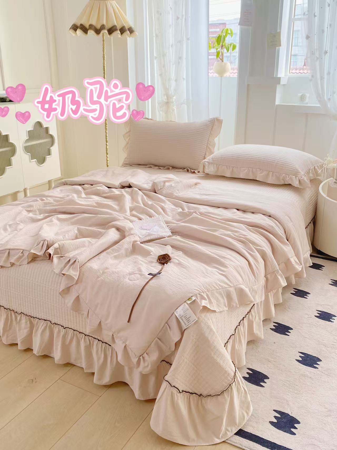 (总)希朵家纺 2025新款木棉皱皱纱多功能床盖四件套,法式庄园粉,法式庄园绿,格子兔,可爱狗狗,浪漫花海绿,满满爱意,田间女孩,熊多多,紫蝴蝶,紫色浪漫