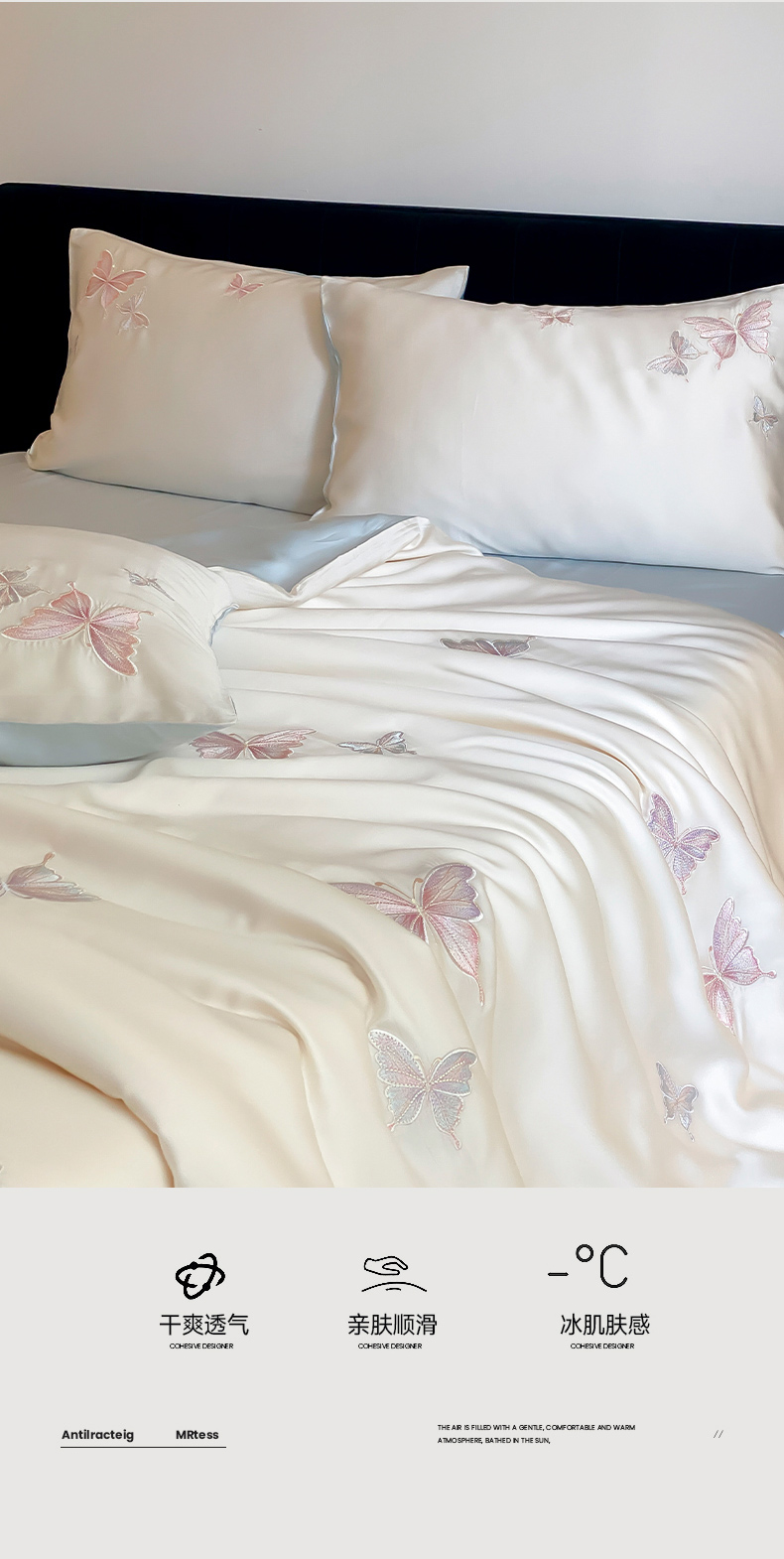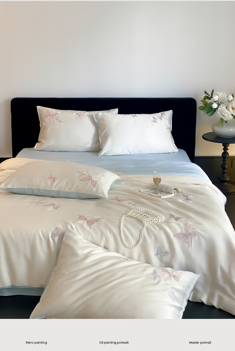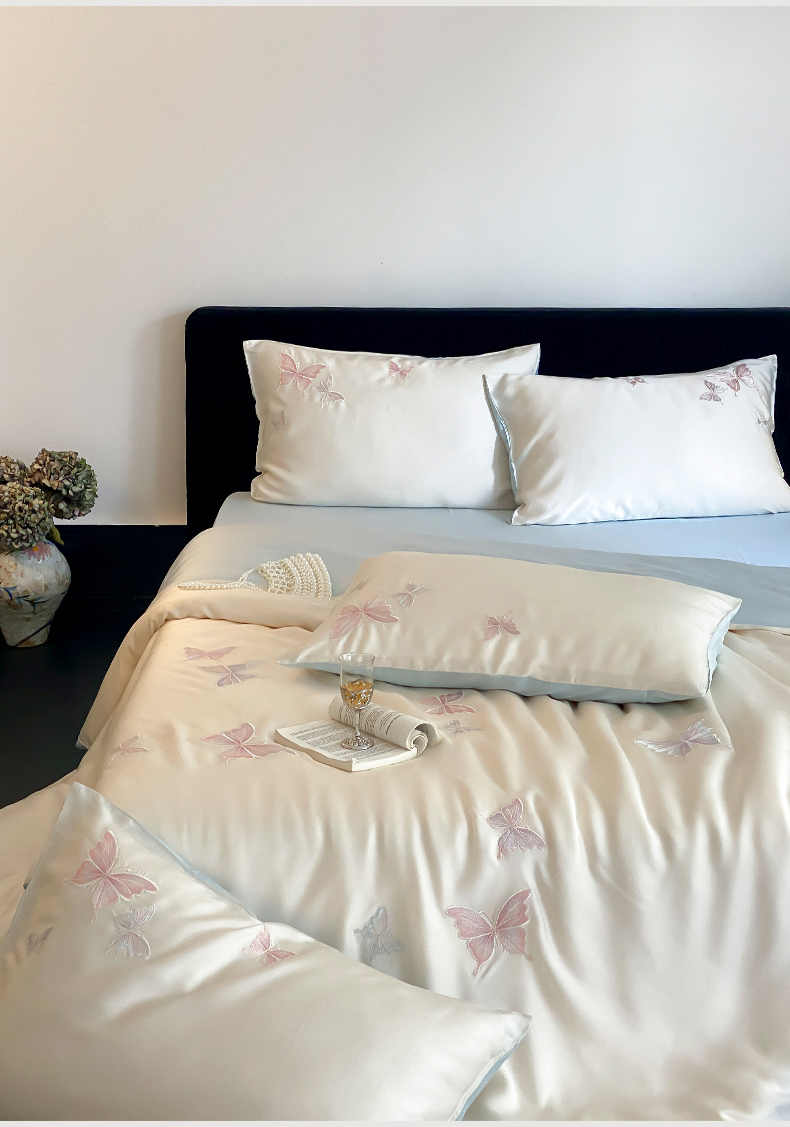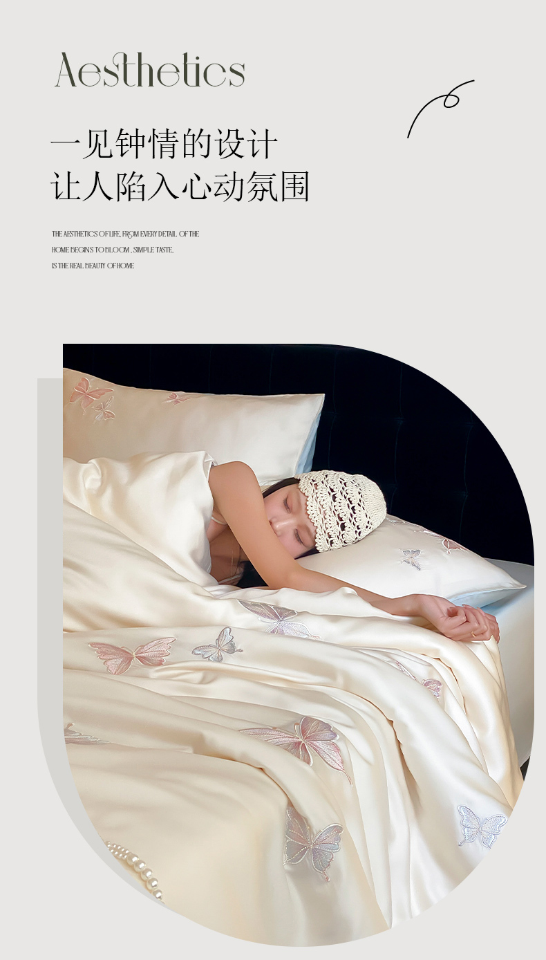 (总)云栖家居 2025秋冬新款50支纯色双拼加厚全棉磨毛被套刺绣100S纯棉四件套-小蝴蝶系列,粉灰,粉紫,蓝灰,米玉,月光黄