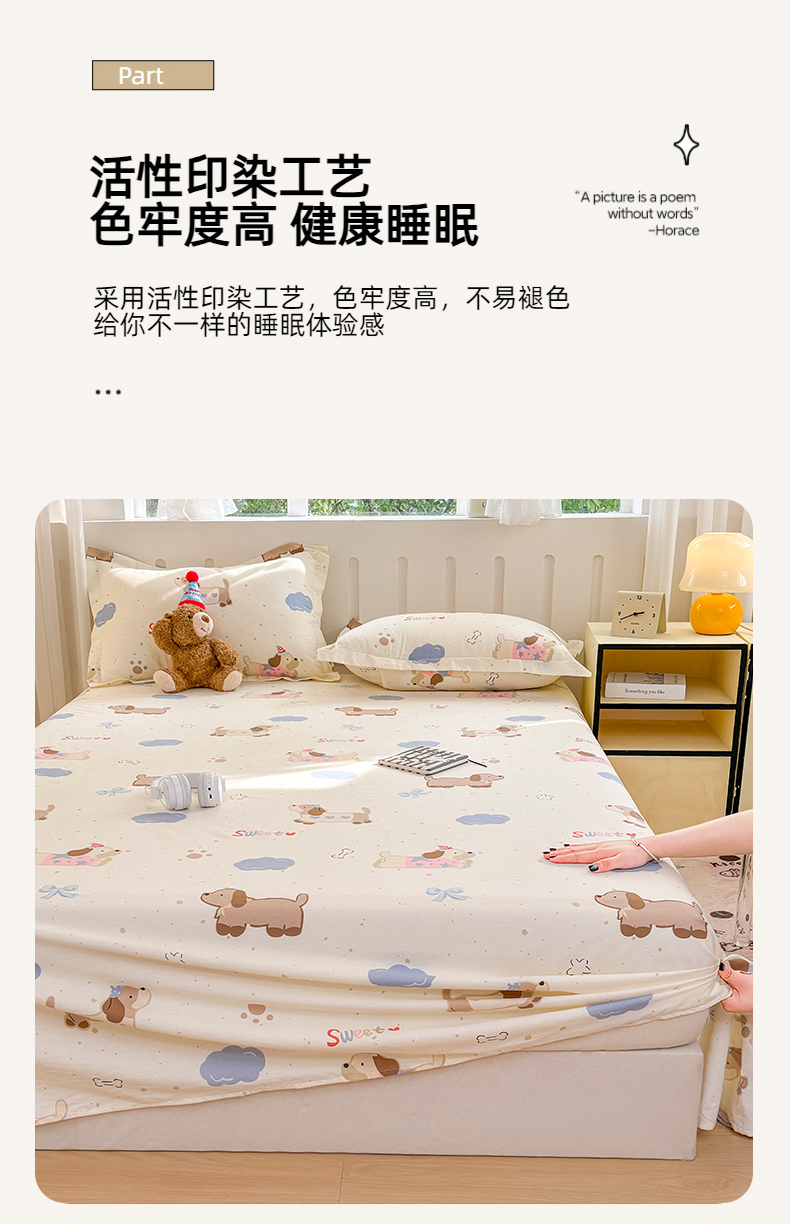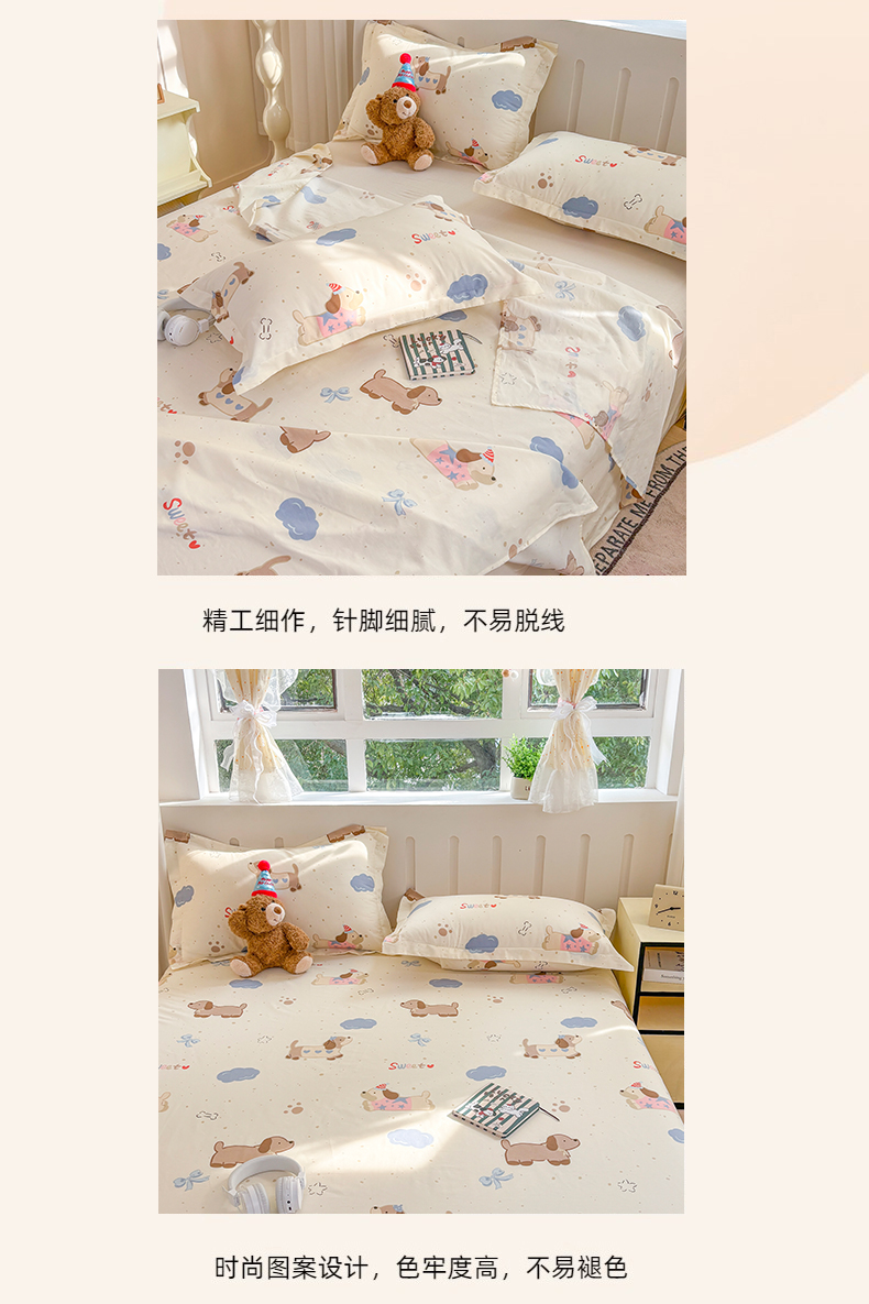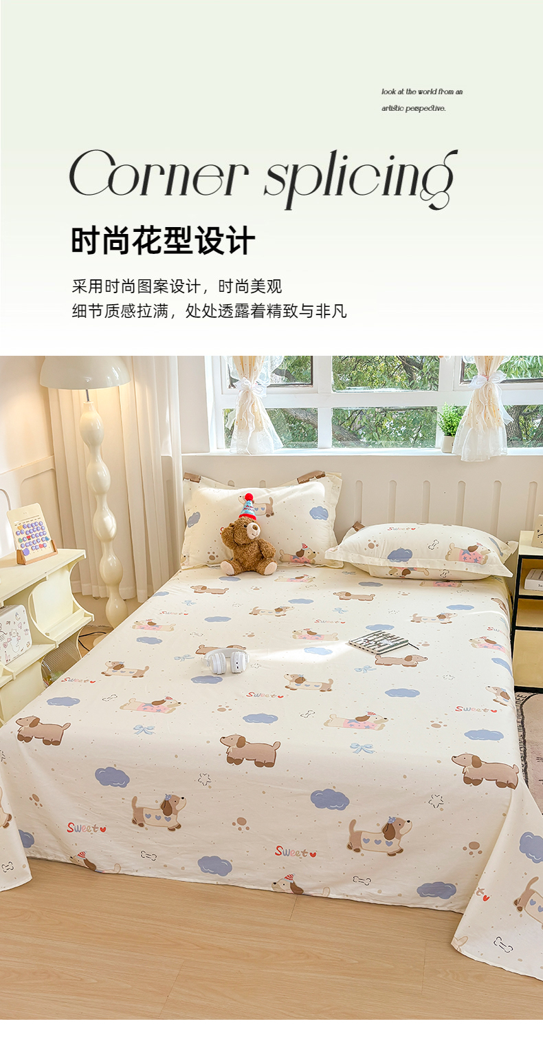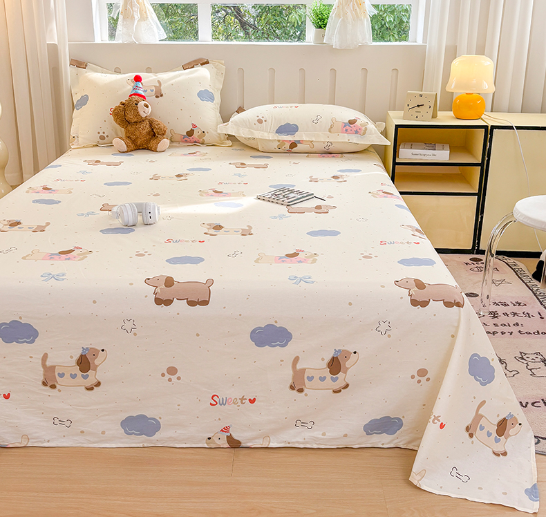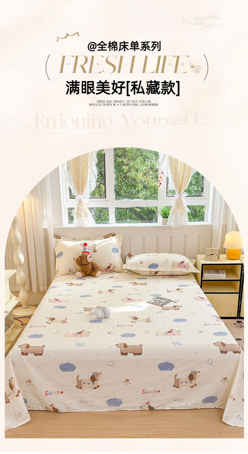 • 91家纺网 家纺一手货源 找家纺 大吉 2025新款亲肤舒适全棉纯棉喷气小清新印花系列单床单床单单件单品床单 萌宠日记