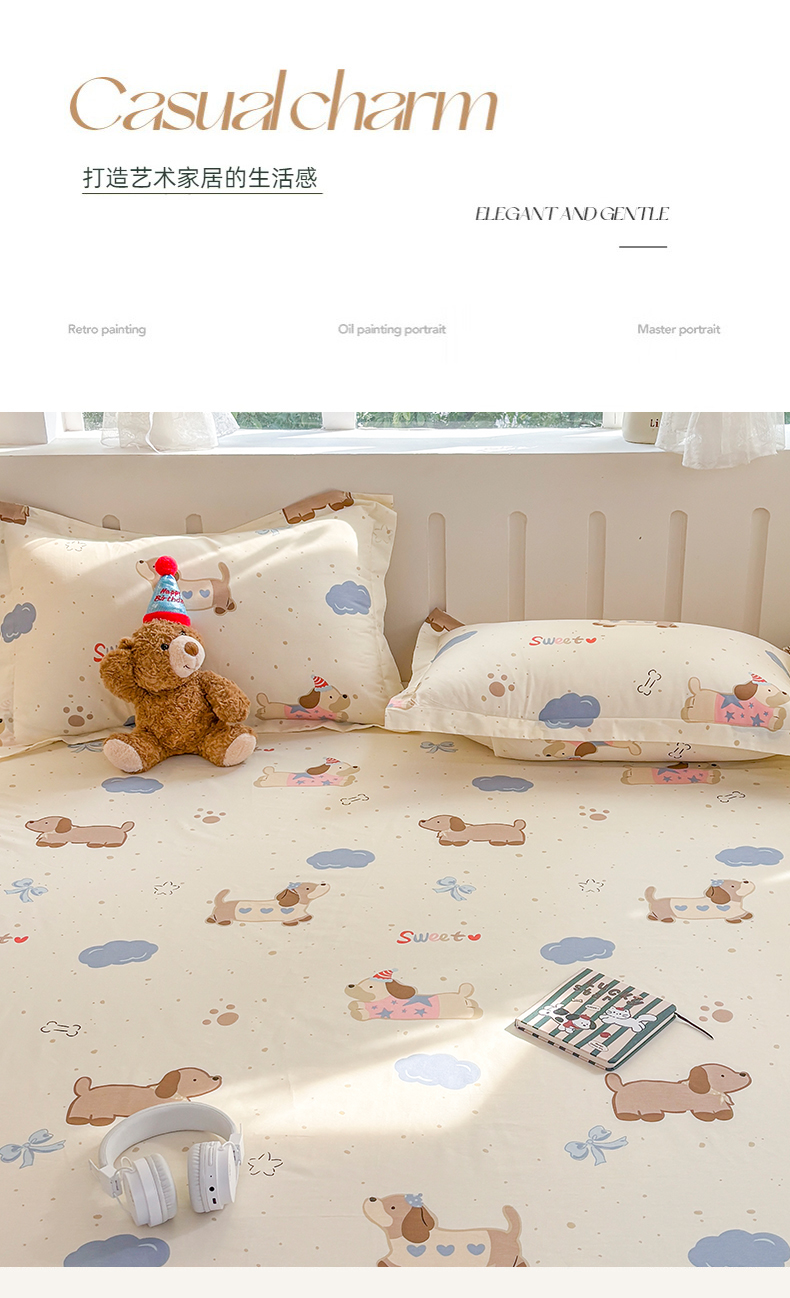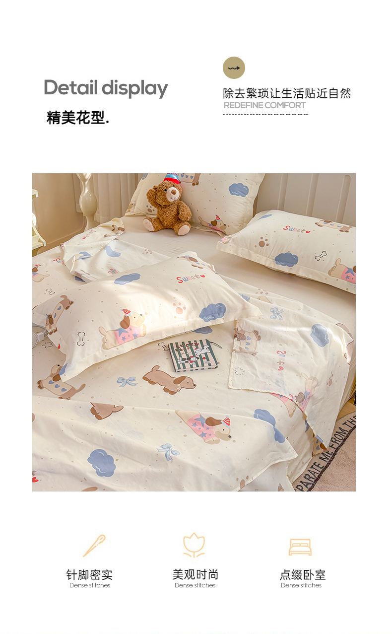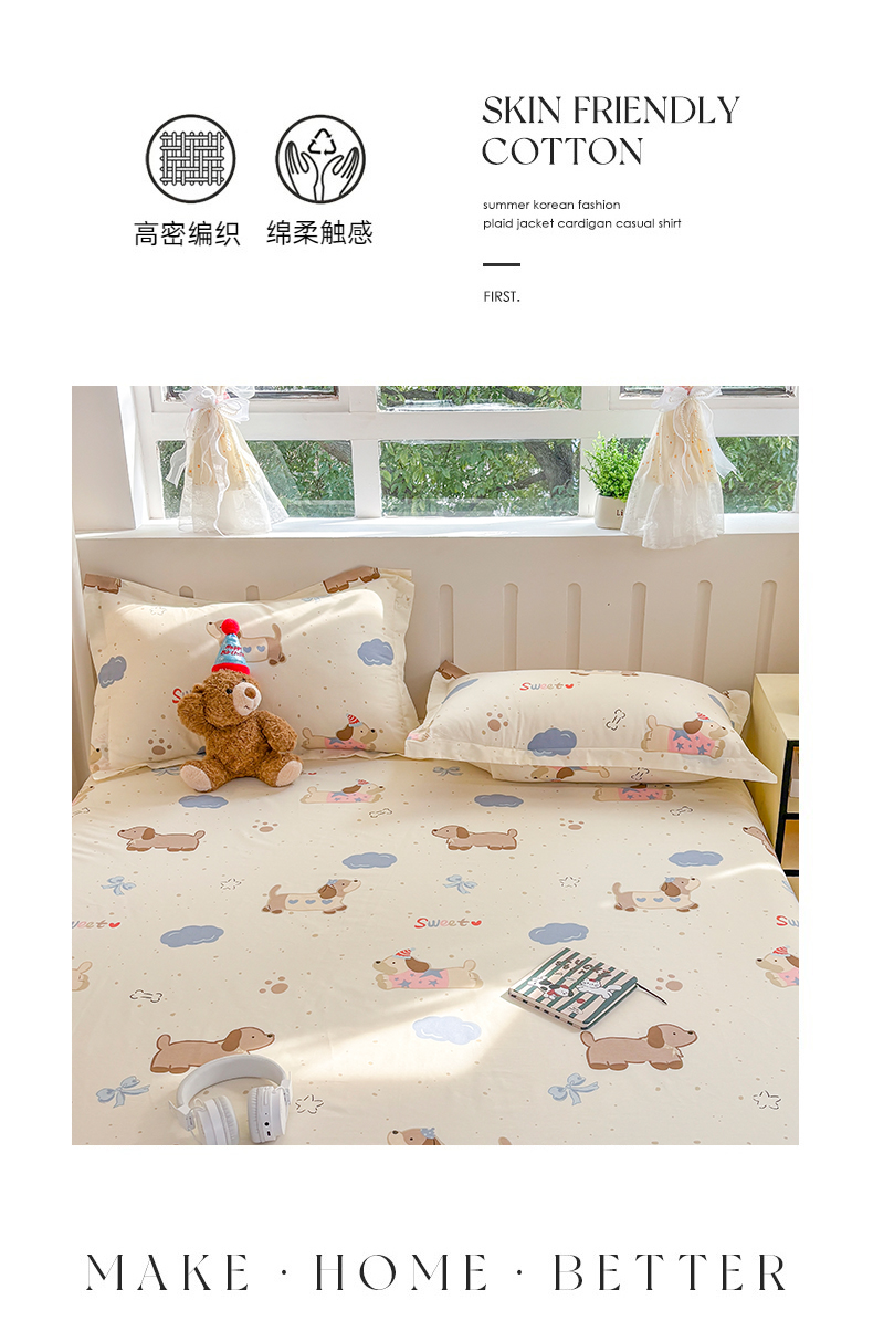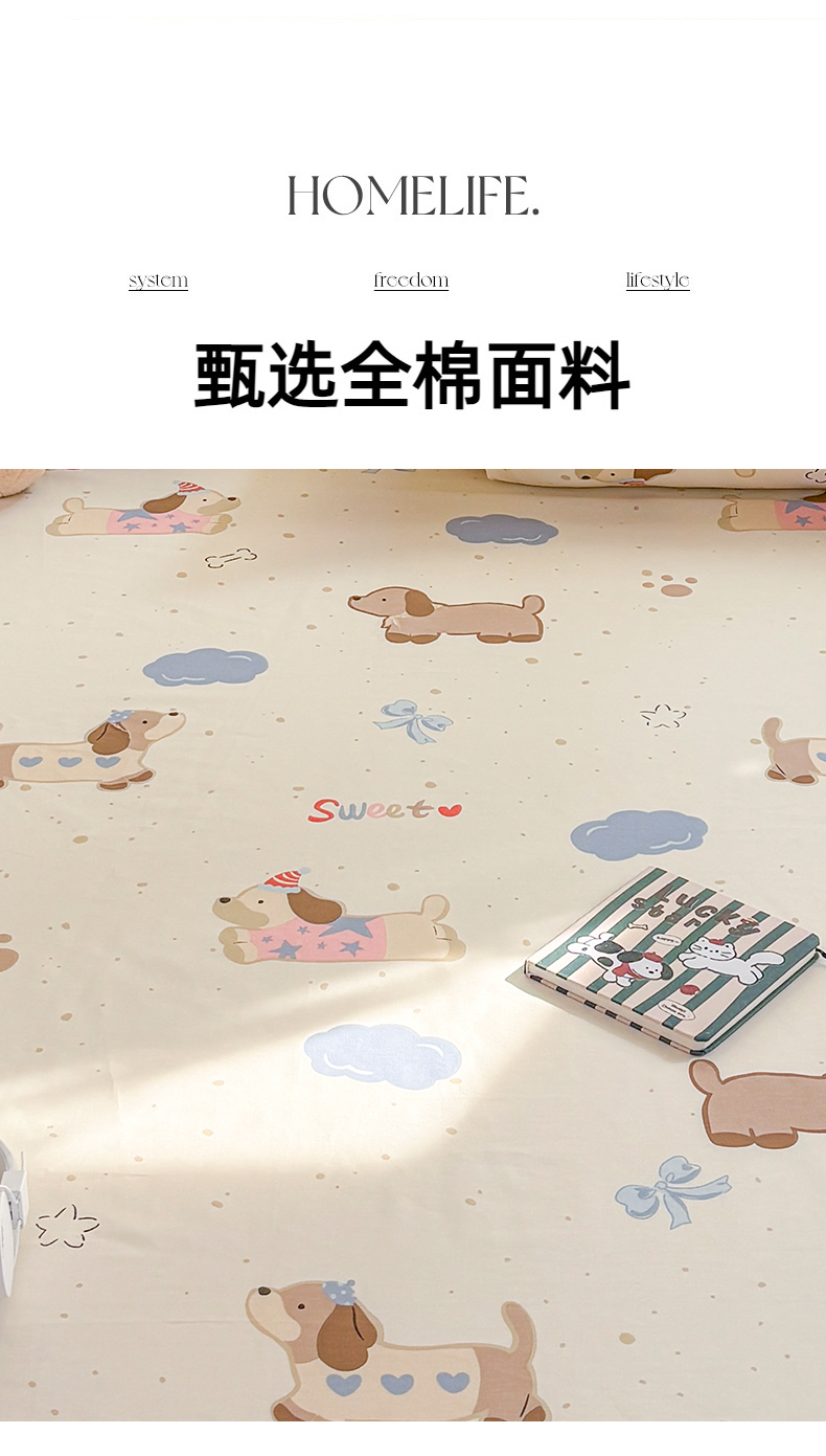 • 91家纺网 家纺一手货源 找家纺 大吉 2025新款亲肤舒适全棉纯棉喷气小清新印花系列单床单床单单件单品床单 萌宠日记