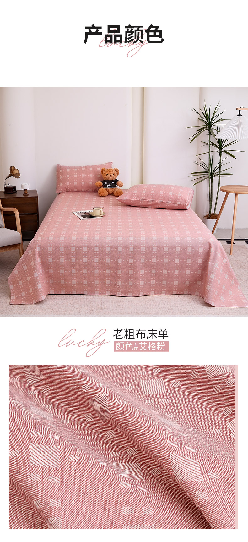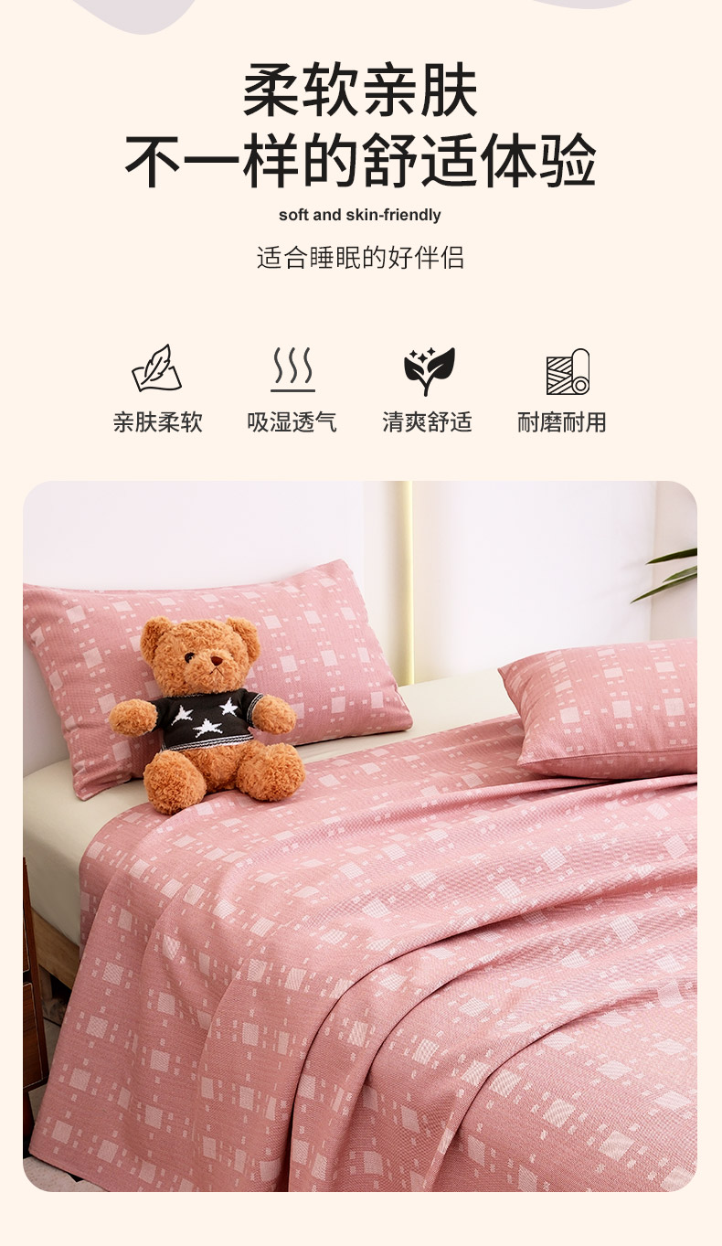 推推家纺 2025新款lucky老粗布床单凉席席子 雅致绿
