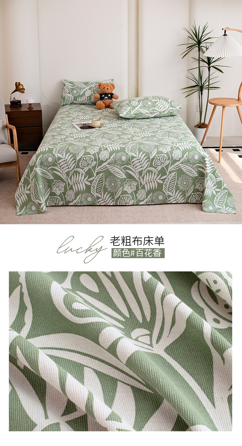 商品名称:推推家纺 2025新款lucky老粗布床单凉席席子 雅致绿