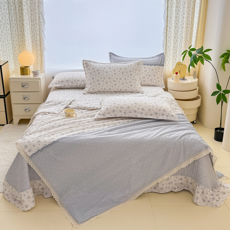 梦可莱家居 2025夏季新款木棉夏被镂空花边床盖四件套 花语