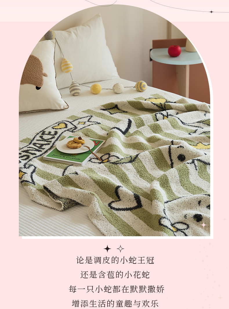 暖绵绵2025新款半边绒涤纶混纺毯子抱枕套 斯内克-粉