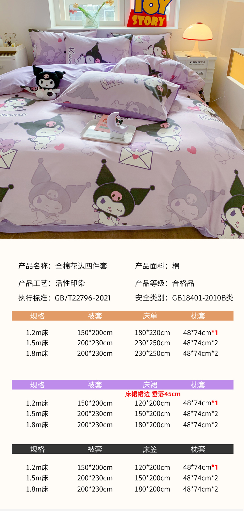 商品名称:(总)玉元坊 2025年5月新品三丽鸥全棉床单纯棉床裙床笠三四件套简约基础款式-库洛米简约款式