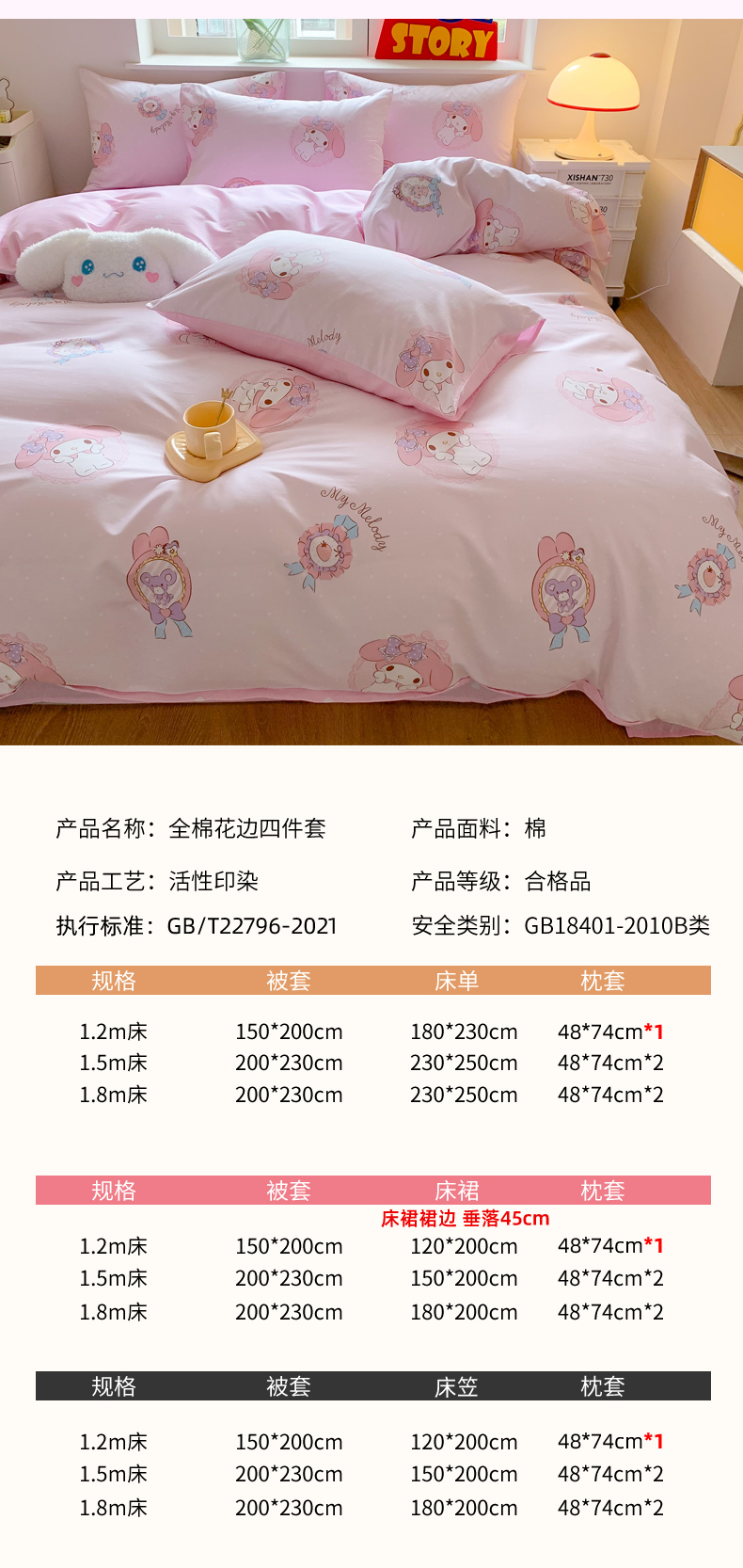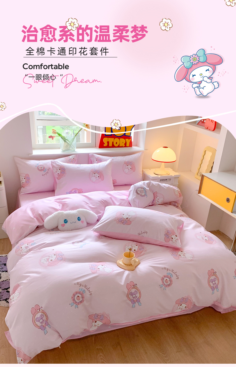 当前位置: 91家纺网 > 商品网购 > 床品套件 > 四件套 > 全棉普通四件套 > 玉元坊 2025年5月新品三丽鸥全棉床单纯棉床裙床笠三四件套简约基础款式-美乐蒂简约款式 小兔美乐蒂【简约款】