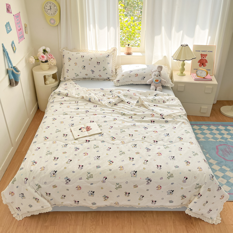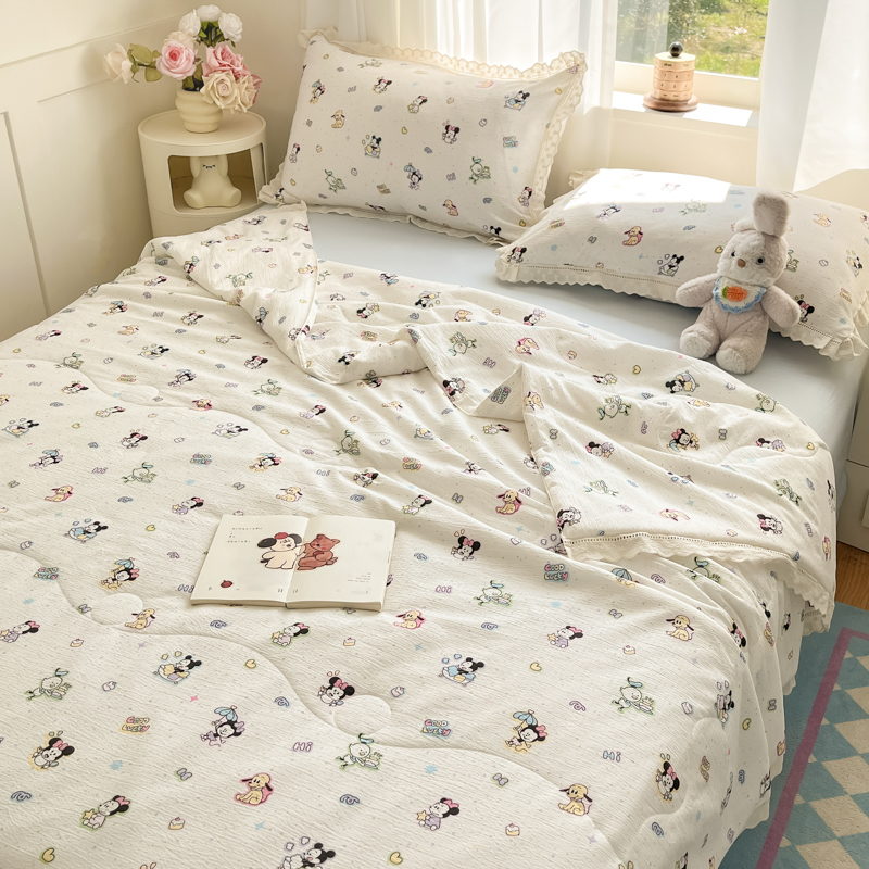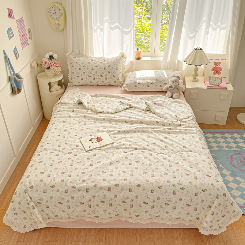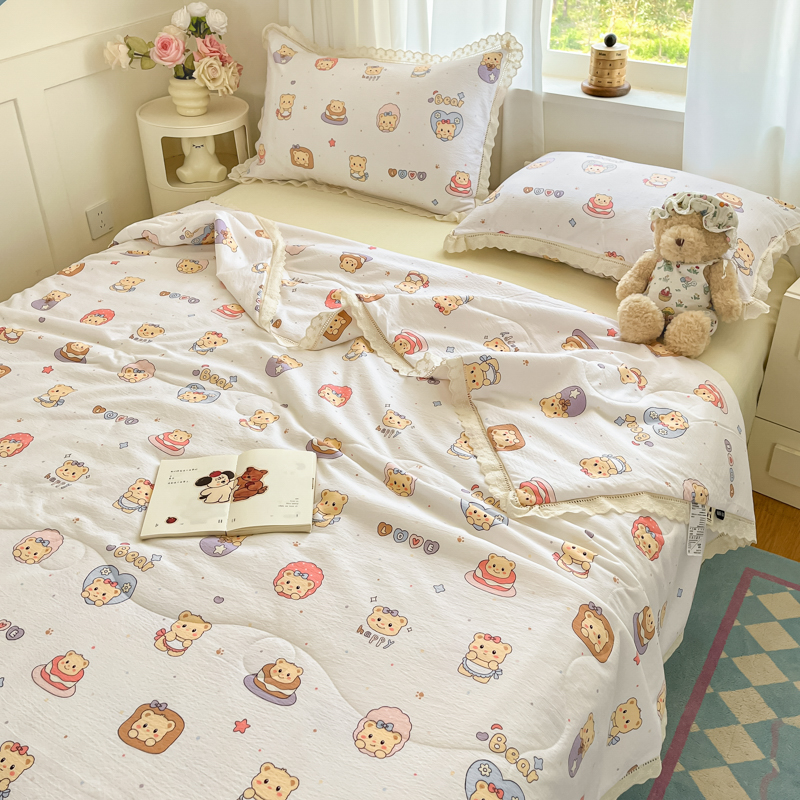 商品名称:玉海棠家纺 2025新款云感云感双层纱皱皱纱全棉花边款夏被四件套 约定熊