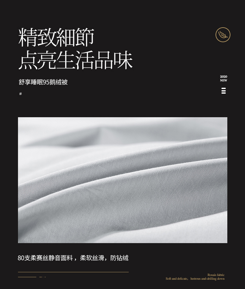 当前位置: 91家纺网 > 商品网购 > 被子 > 羽绒被 > 呆头鹅羽绒工厂店 2025新款80支柔赛丝羽绒被-标准款 白鹅绒鸭绒被子被芯羽绒工厂店 灰色