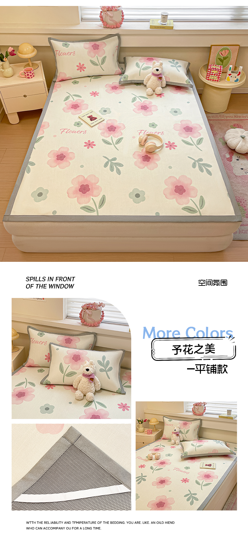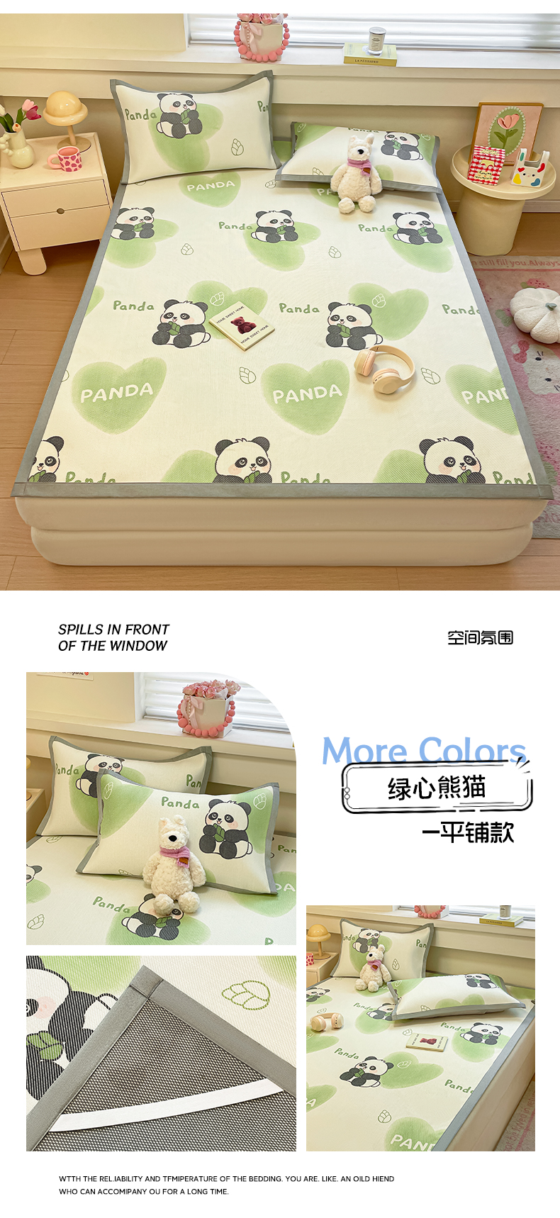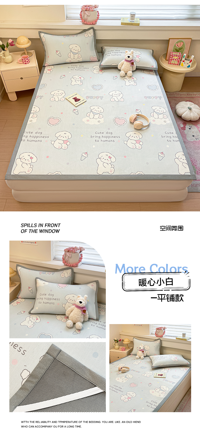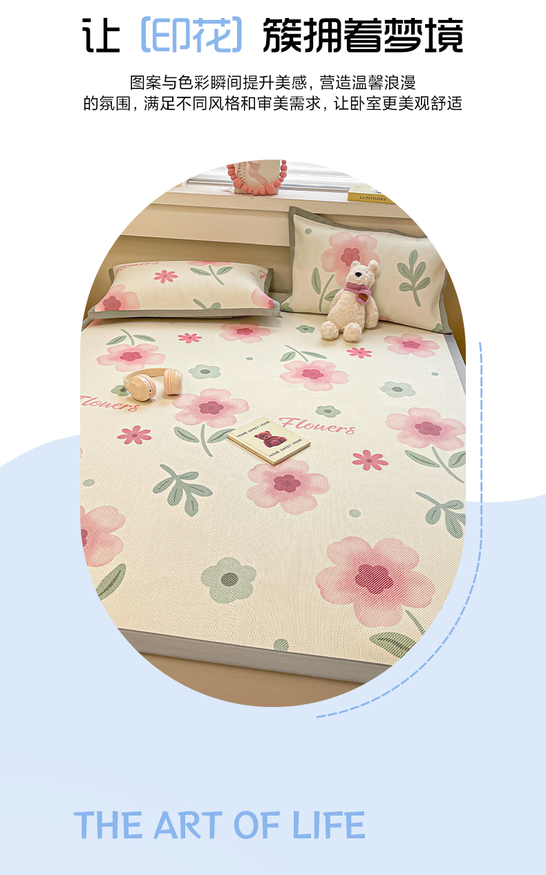 商品名称:逸尚阁 2025春夏新款数码印花冰藤席空调席三件套 兔兔乐园-平铺款