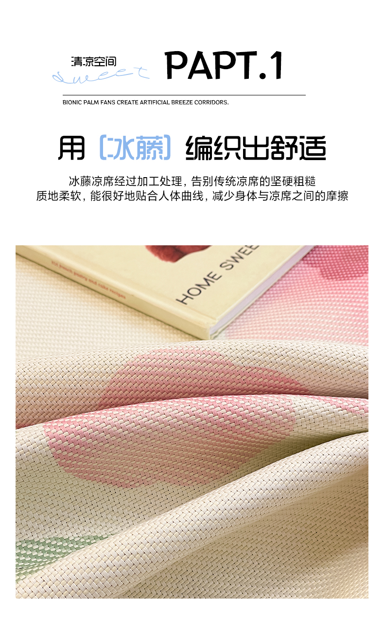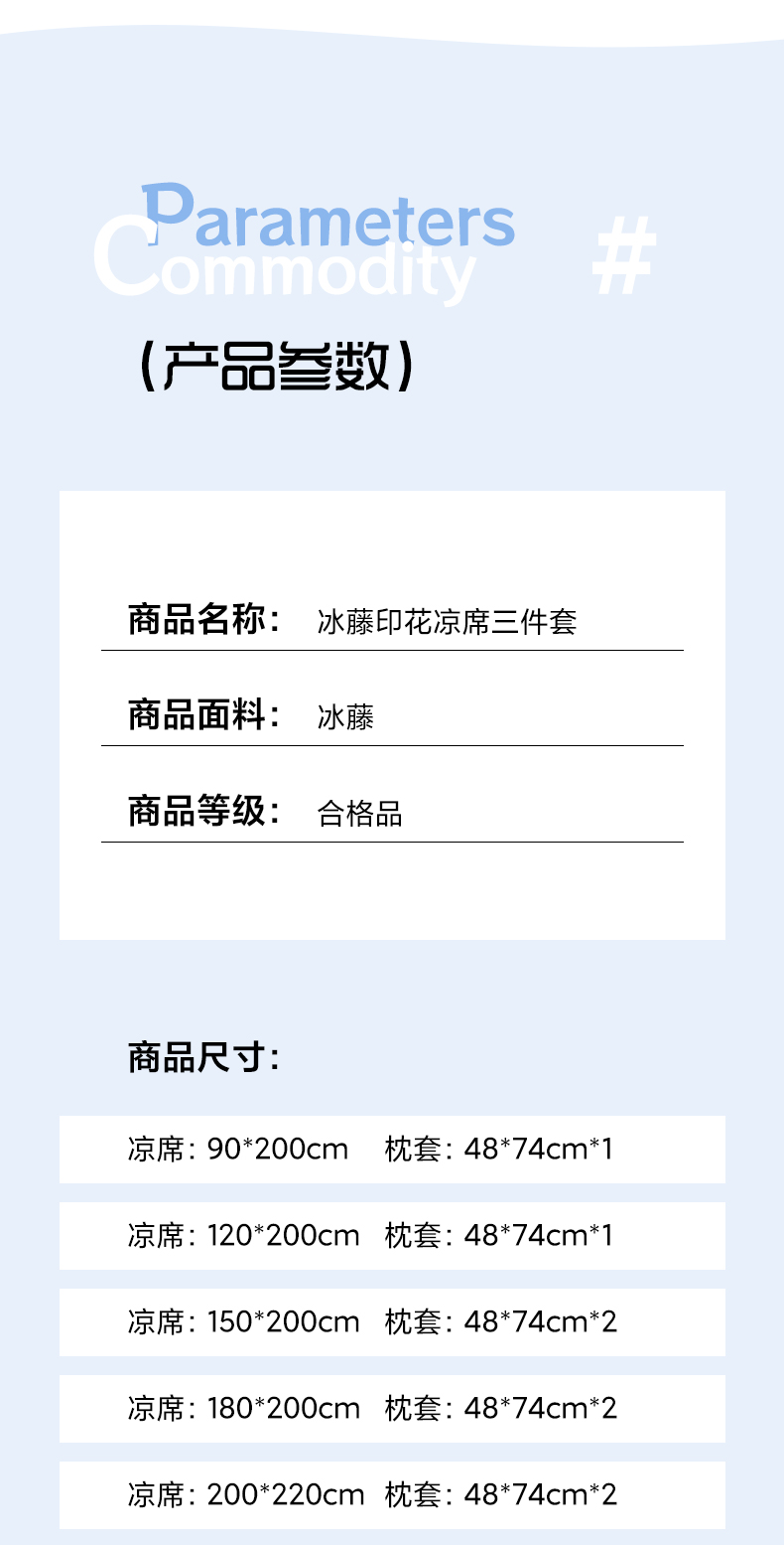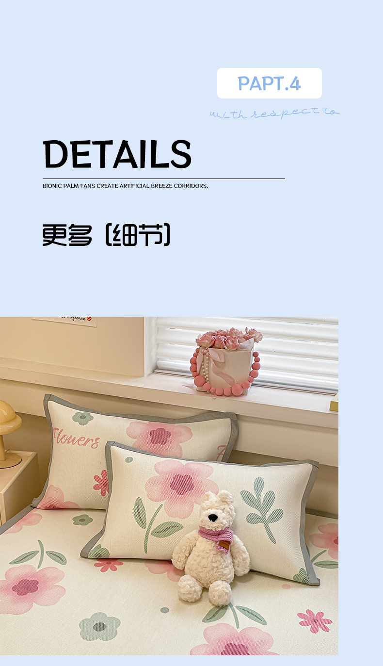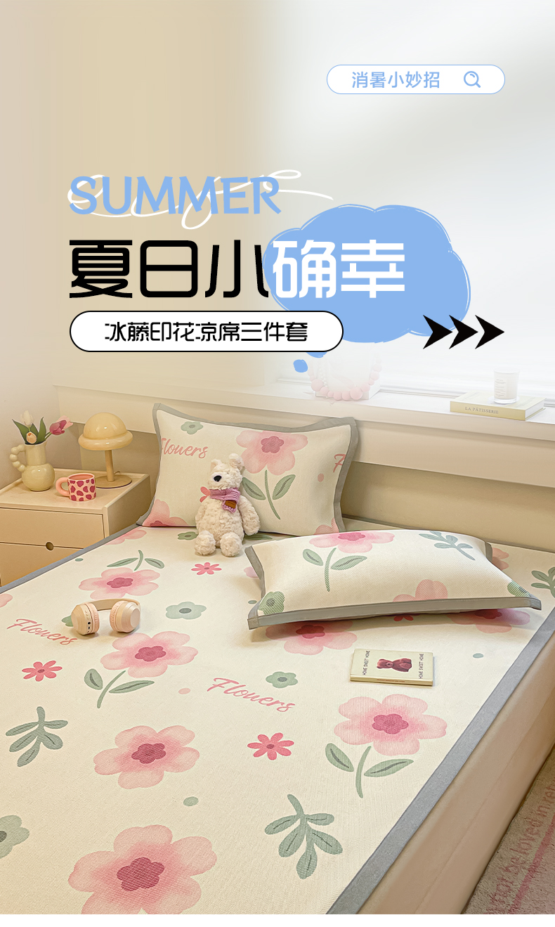 商品名称:逸尚阁 2025春夏新款数码印花冰藤席空调席三件套 兔兔乐园-平铺款