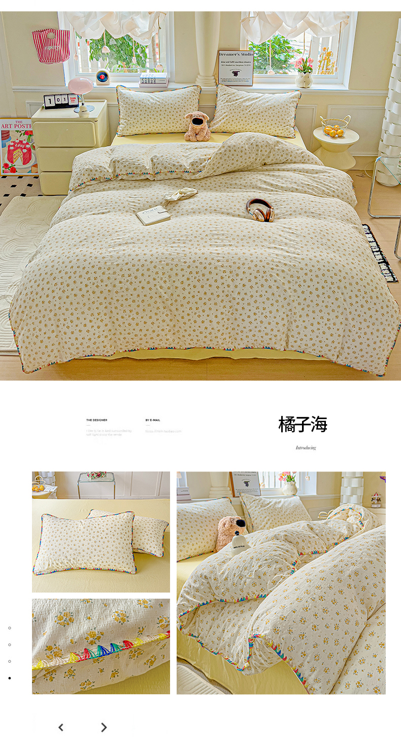 当前位置: 91家纺网 > 商品网购 > 床品套件 > 四件套 > 双层纱四件套 > Mata蔓塔家 2025春夏新款云感针织双层纱彩色贝壳边四件套 橘子海