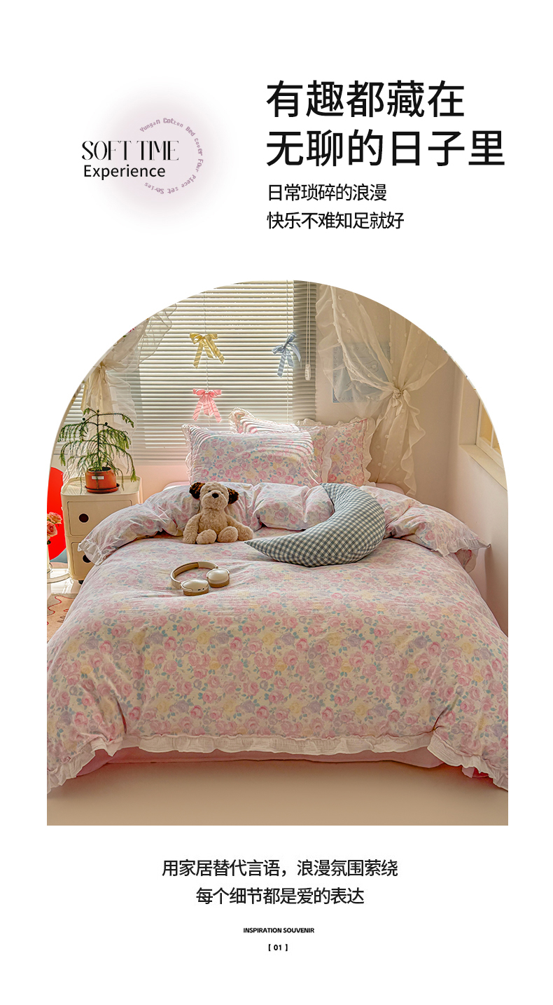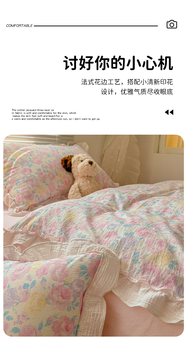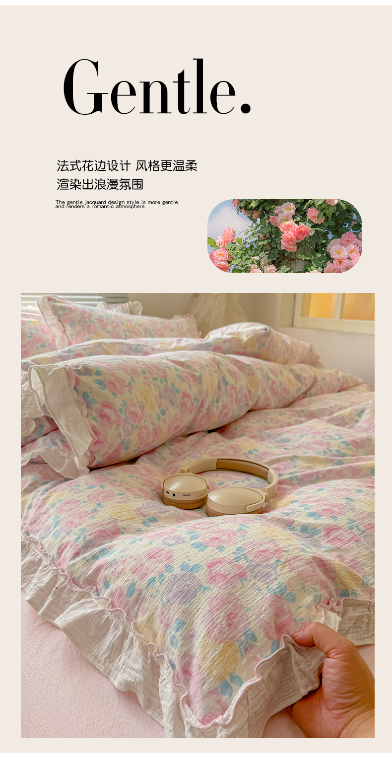 当前位置: 91家纺网 > 商品网购 > 床品套件 > 四件套 > 提花四件套 > 繁花家居 2025新款云感棉提花学生季超温柔小花边四件套 半亩花田