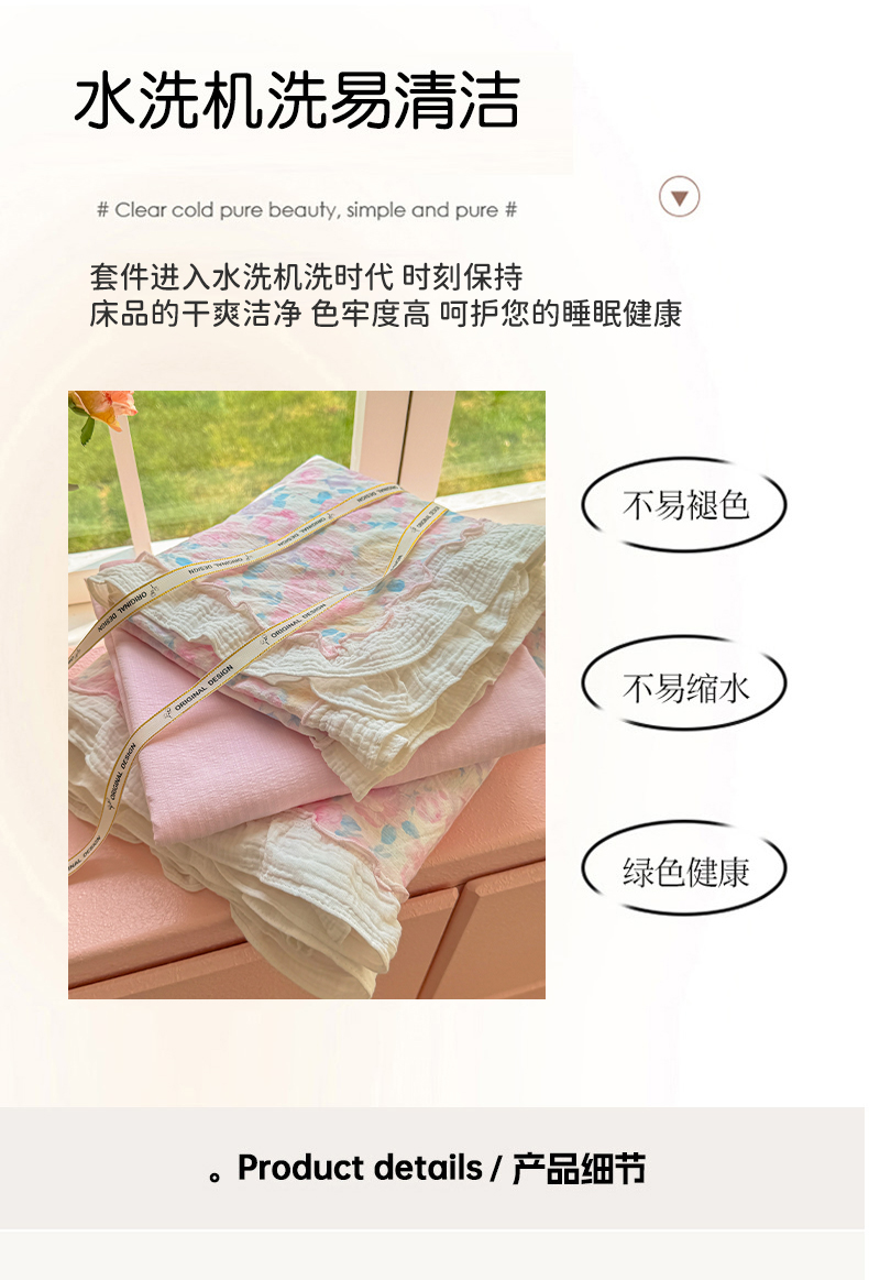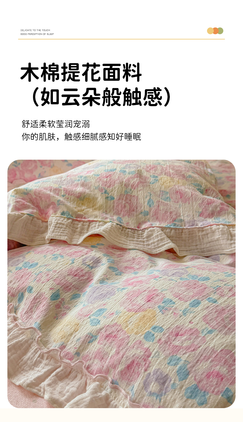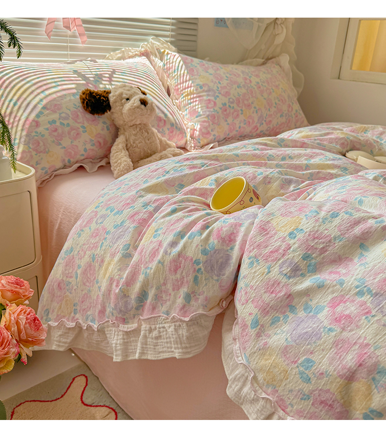 当前位置: 91家纺网 > 商品网购 > 床品套件 > 四件套 > 提花四件套 > 繁花家居 2025新款云感棉提花学生季超温柔小花边四件套 半亩花田