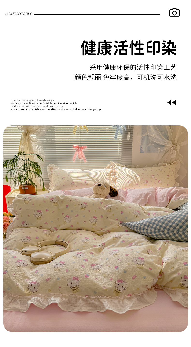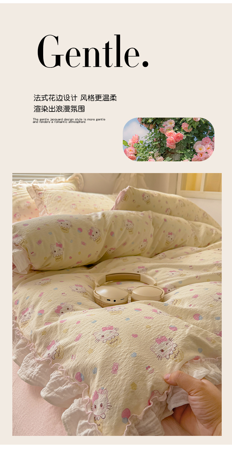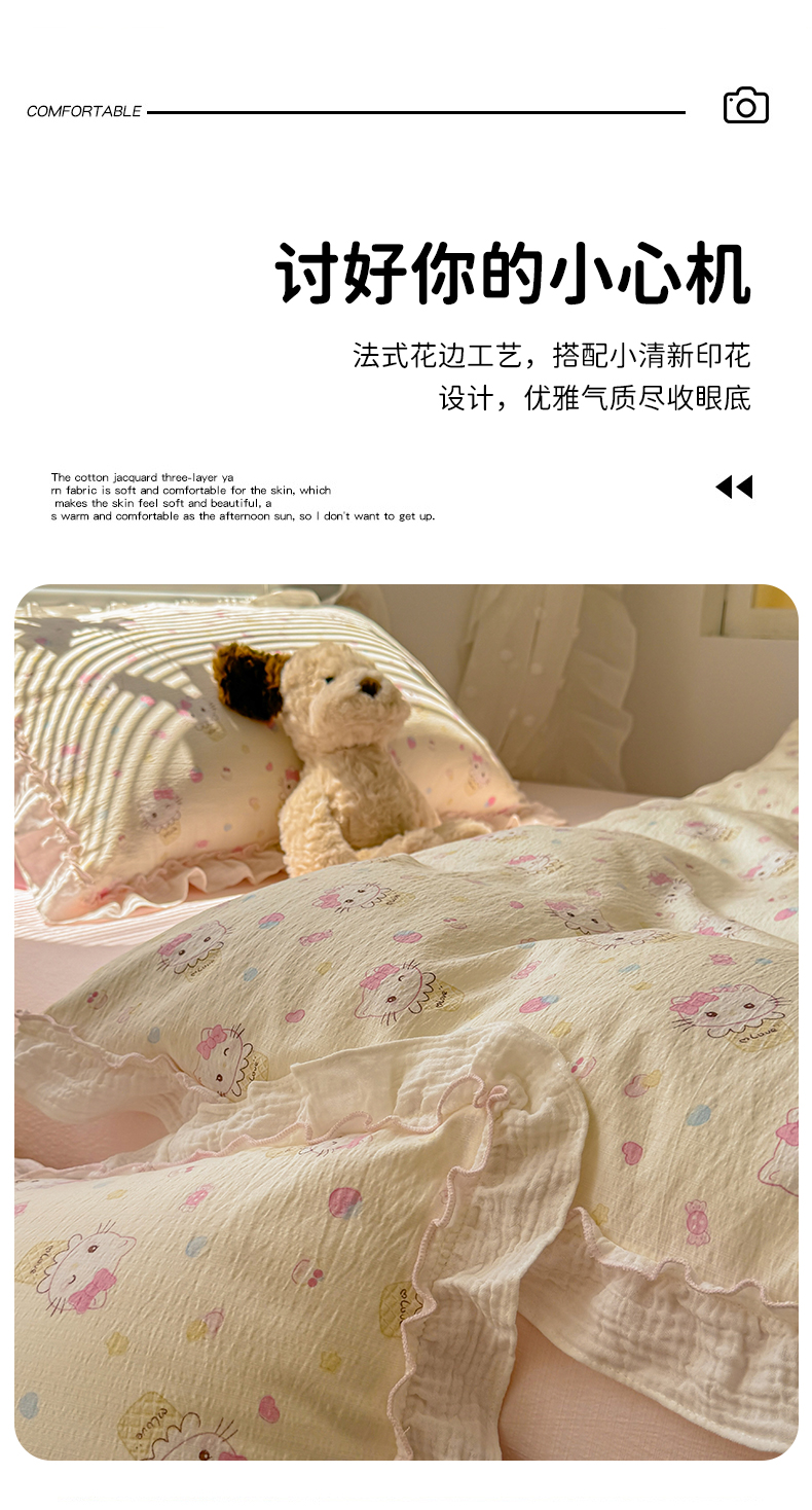 当前位置: 91家纺网 > 商品网购 > 床品套件 > 四件套 > 提花四件套 > 繁花家居 2025新款云感棉提花学生季超温柔小花边四件套 圣代甜喵-米