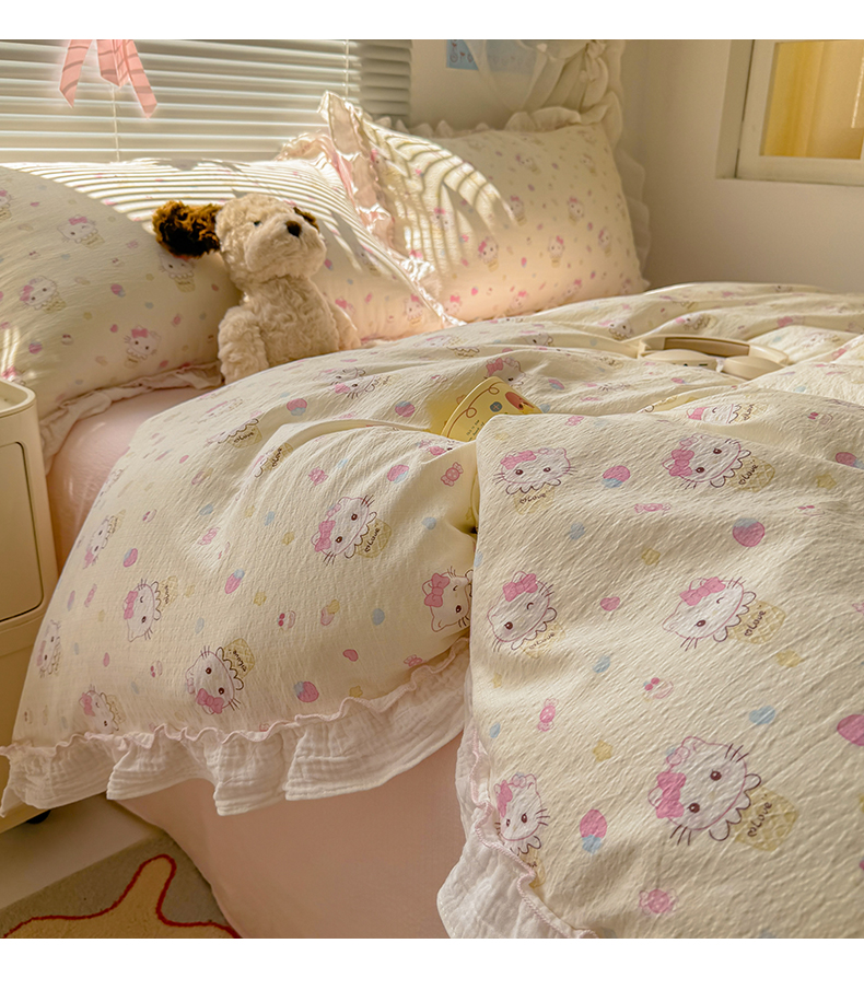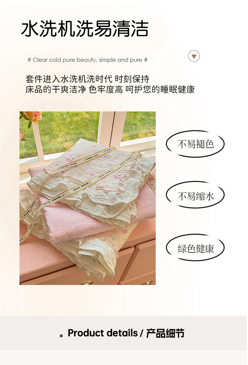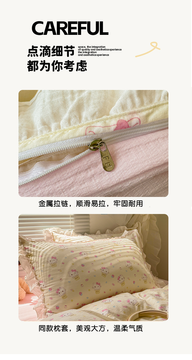 当前位置: 91家纺网 > 商品网购 > 床品套件 > 四件套 > 提花四件套 > 繁花家居 2025新款云感棉提花学生季超温柔小花边四件套 圣代甜喵-米