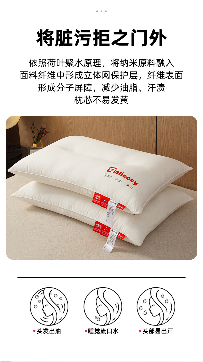 当前位置: 91家纺网 > 商品网购 > 枕头/枕芯/保健枕/颈椎枕 > 普通枕芯 > 织布人 2025新款枕芯A类全棉防水防油防污三防功能枕头家用护颈酒店枕芯 A类全棉三防枕-单边低枕 一只装 48x74cm