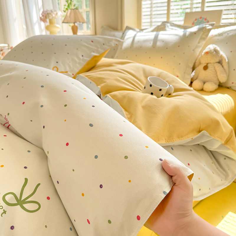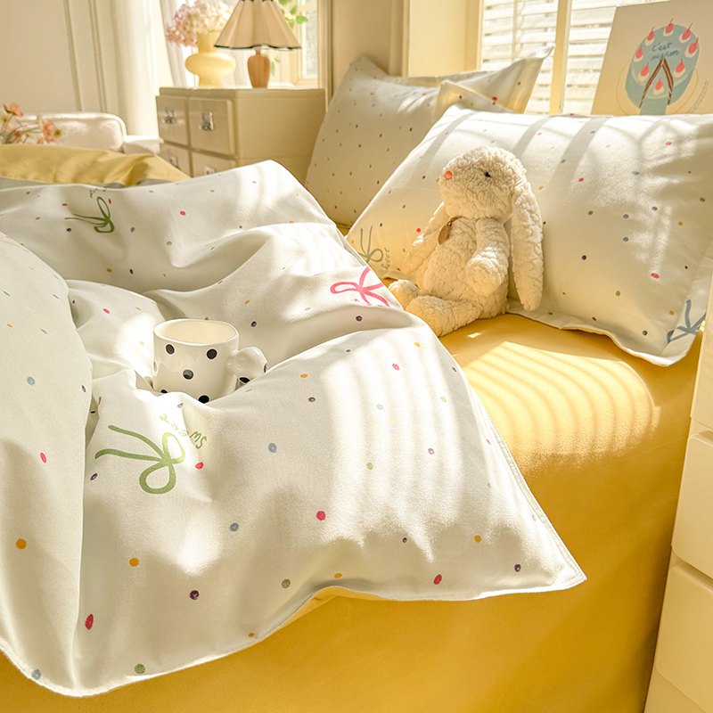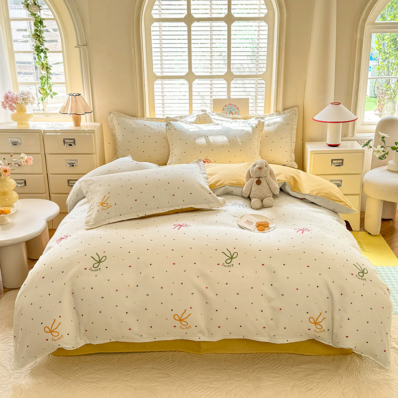优逸家纺 2025新款植物羊绒小清新斜纹磨毛四件套,派对日记
