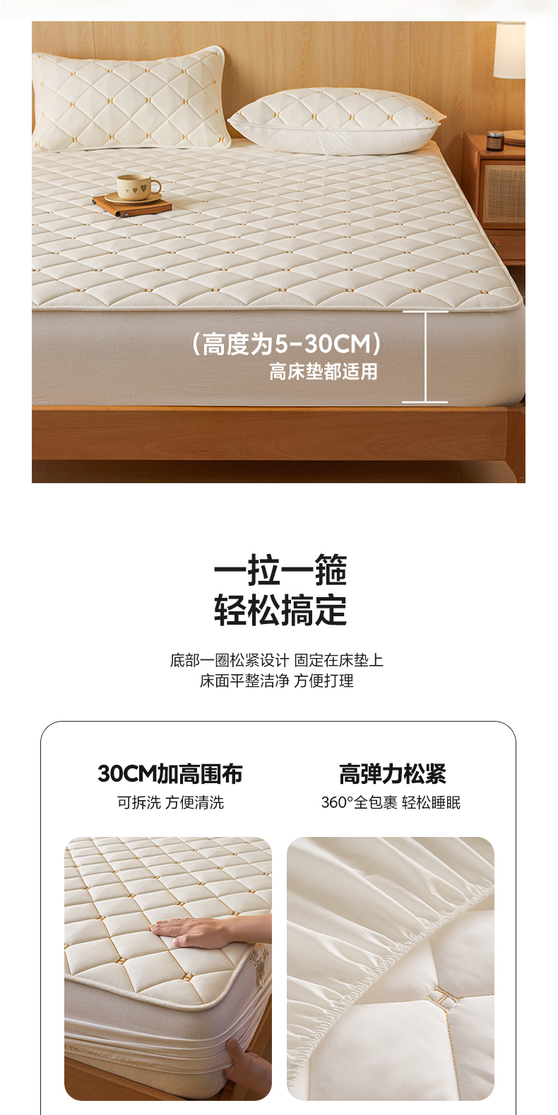 芬晴家纺 2025新款A类母婴全棉H水洗棉床笠 H-白