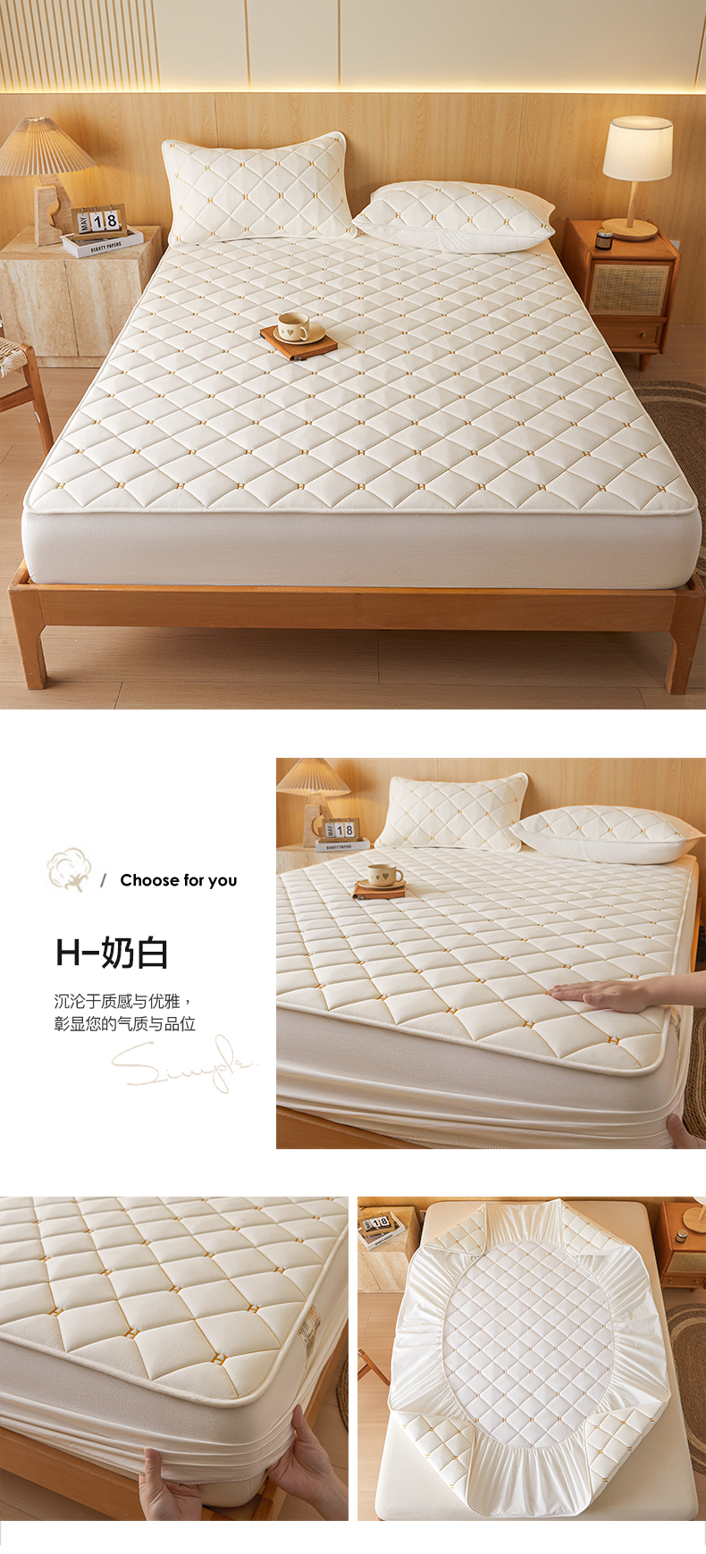 • 91家纺网 家纺一手货源 找家纺 芬晴家纺 2025新款A类母婴全棉H水洗棉床笠 H-白