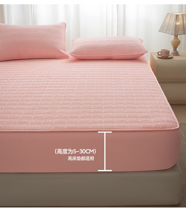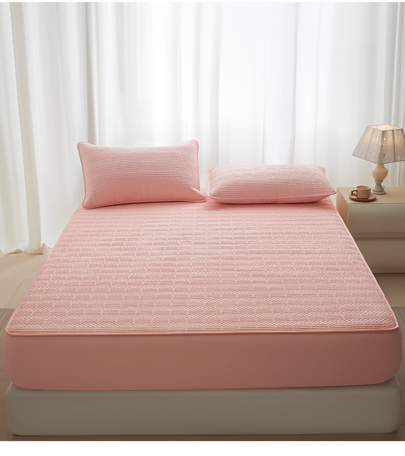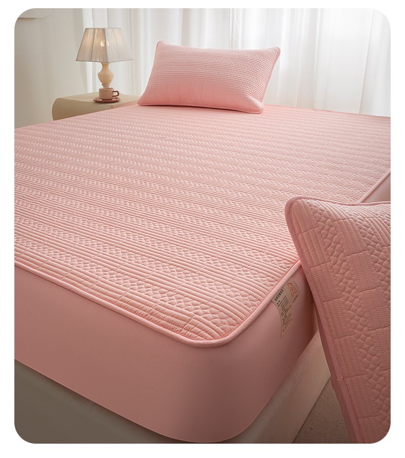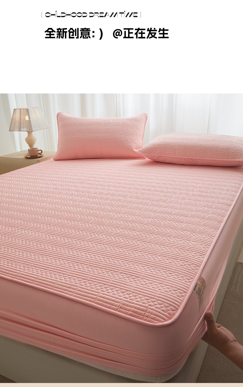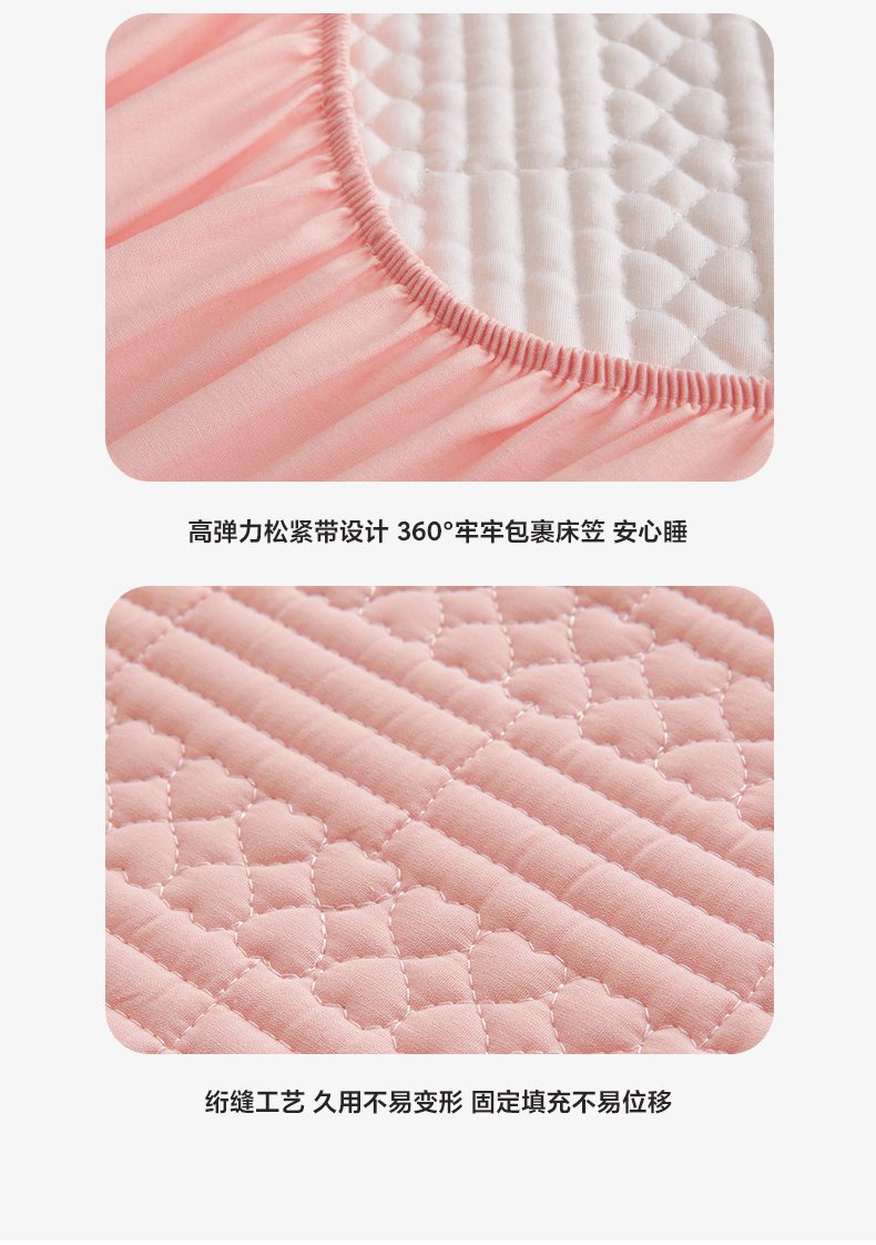 • 91家纺网 家纺一手货源 找家纺 芬晴家纺 2025新款A类全棉夹棉大豆床笠-派对 派对-嫩粉