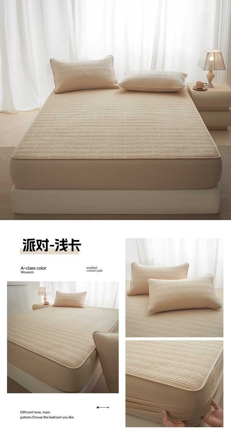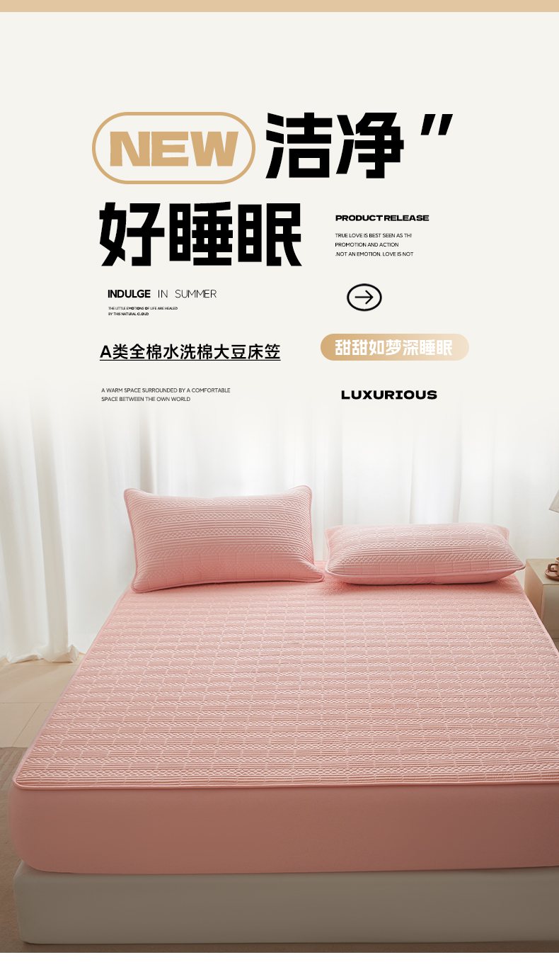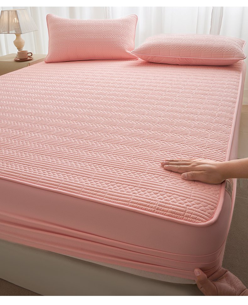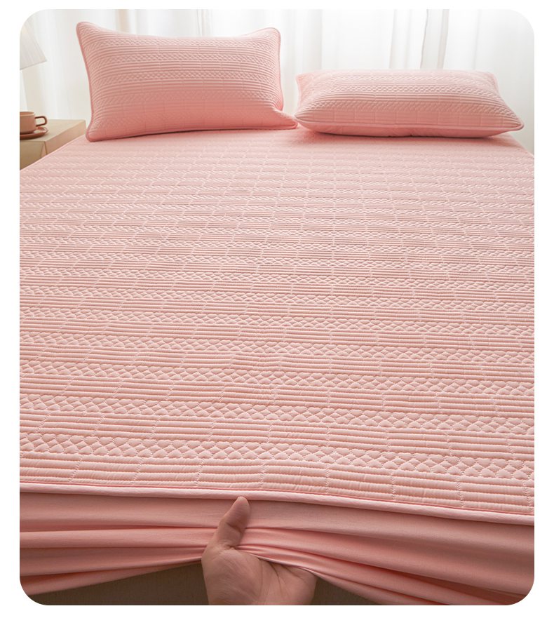 • 91家纺网 家纺一手货源 找家纺 芬晴家纺 2025新款A类全棉夹棉大豆床笠-派对 派对-嫩粉