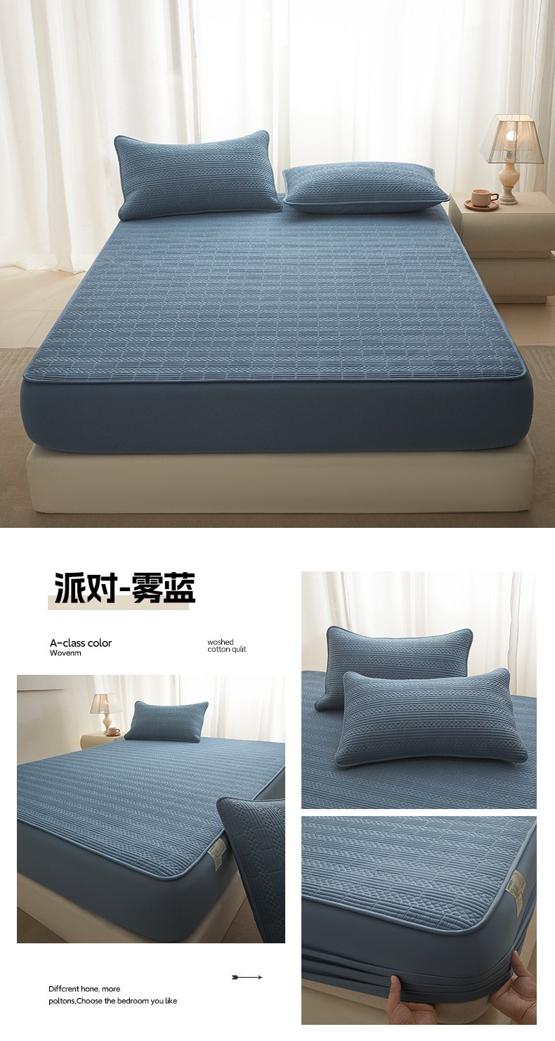 (总)芬晴家纺 2026新款全棉纯棉夹棉棉花床笠单床笠-方纹系列,方纹-白,方纹-嫩粉,方纹-浅卡,方纹-雾蓝,方纹-星灰,方纹-岩灰