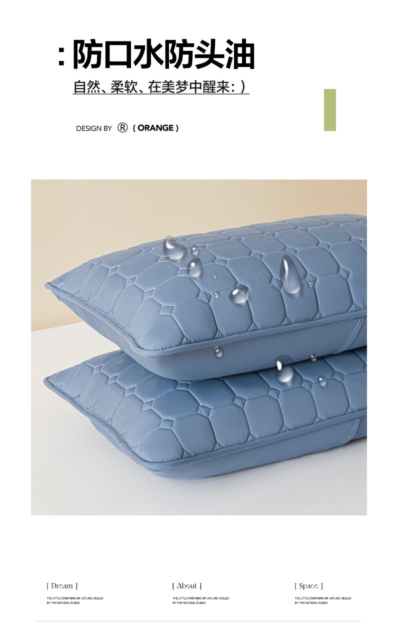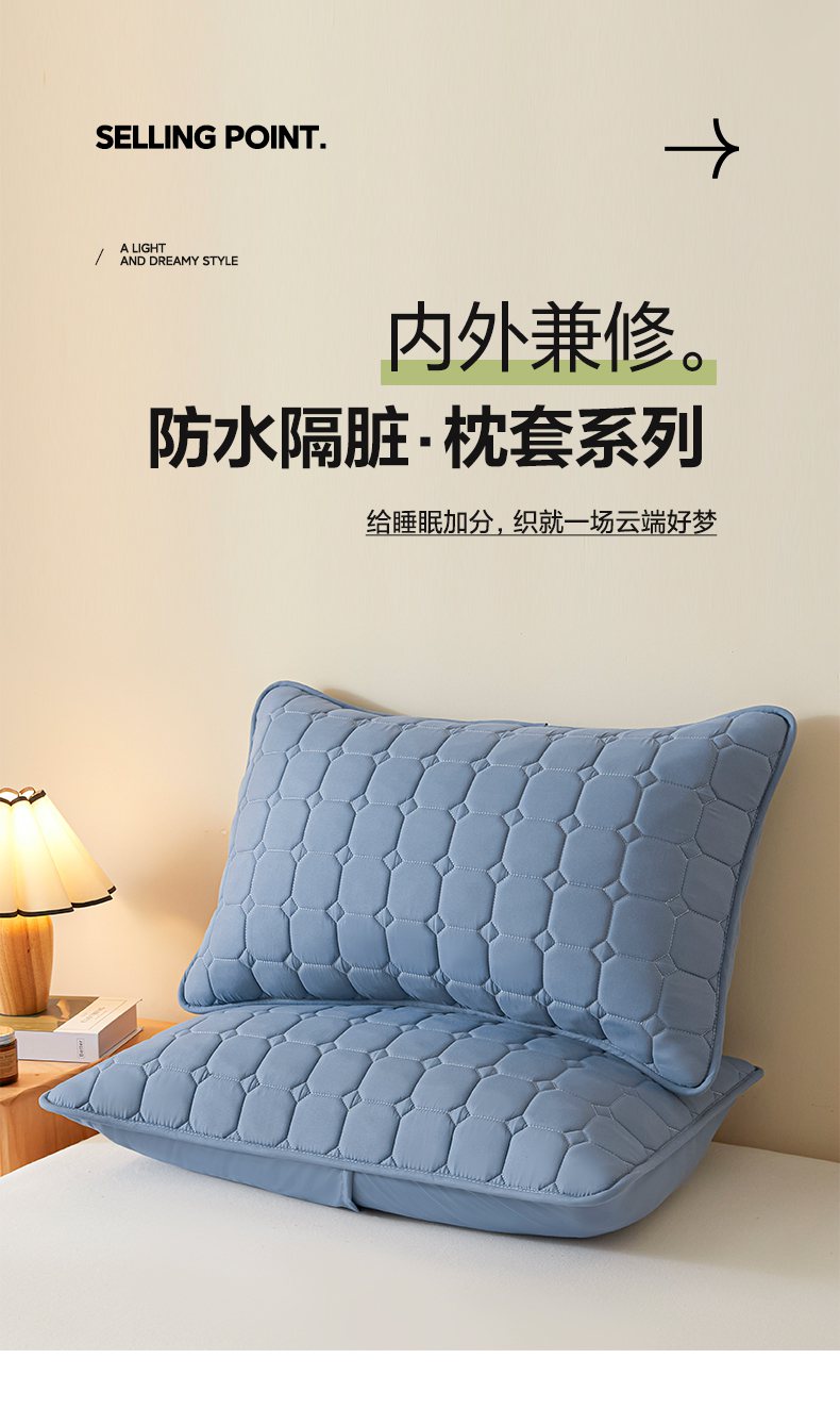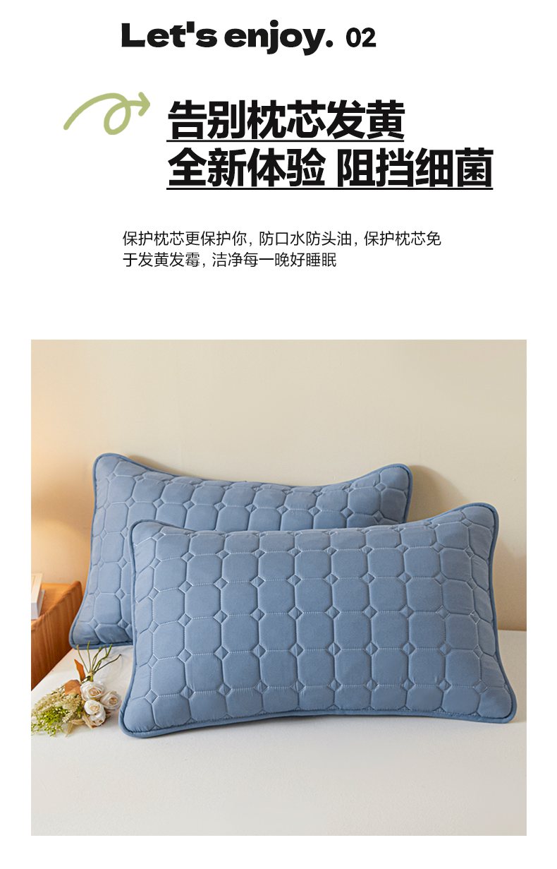 芬晴家纺 2025新款A类母婴级防水枕套系列 简格-雾蓝