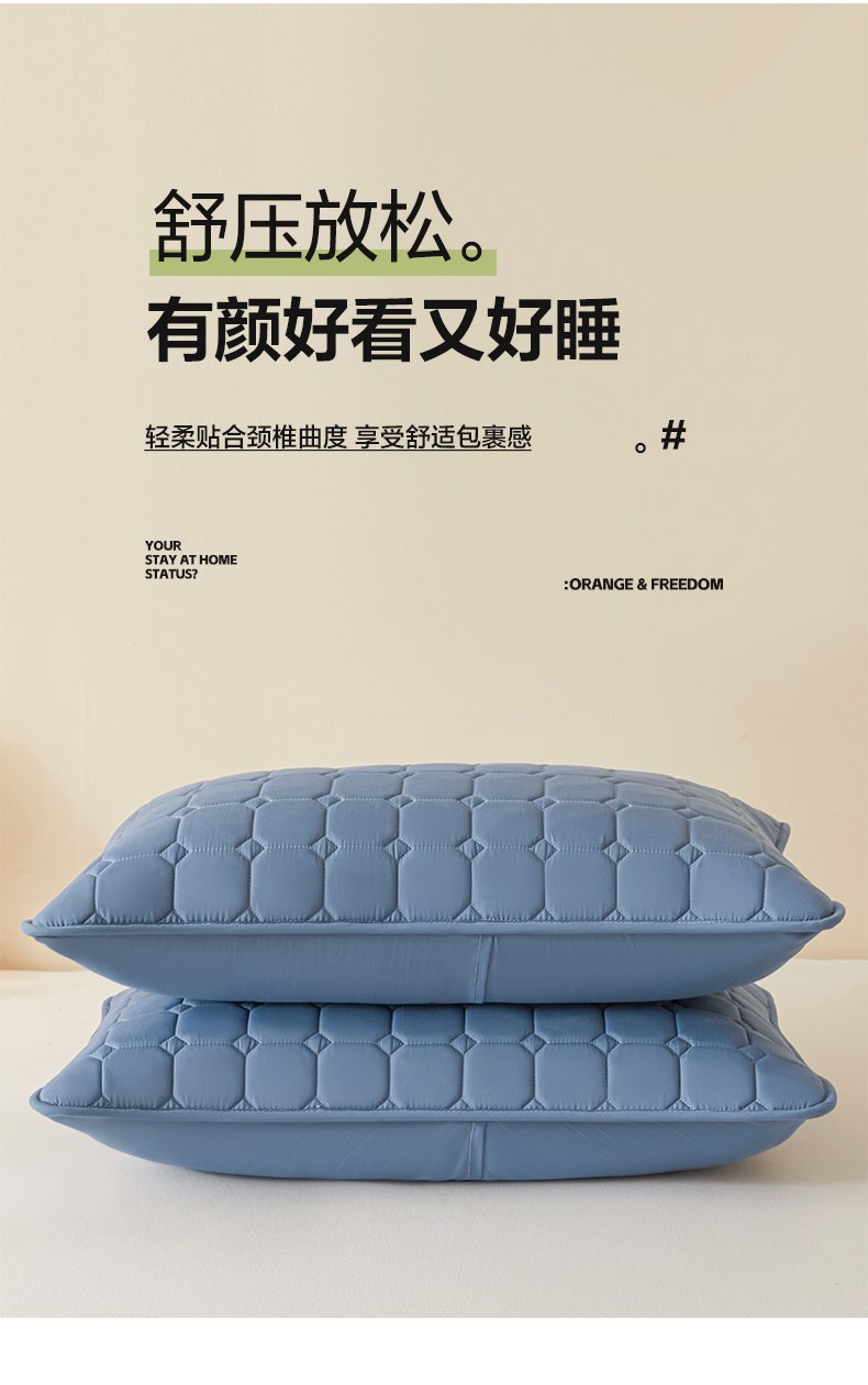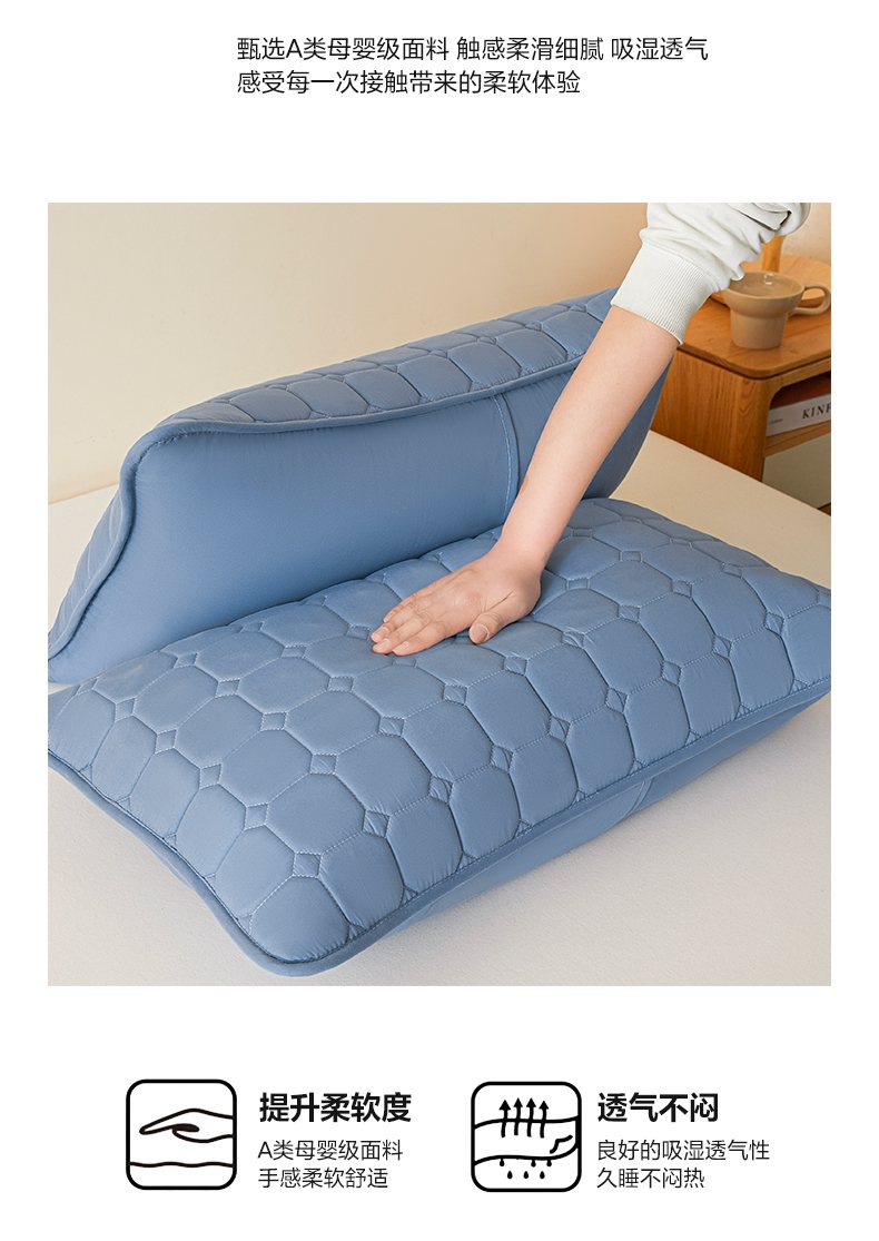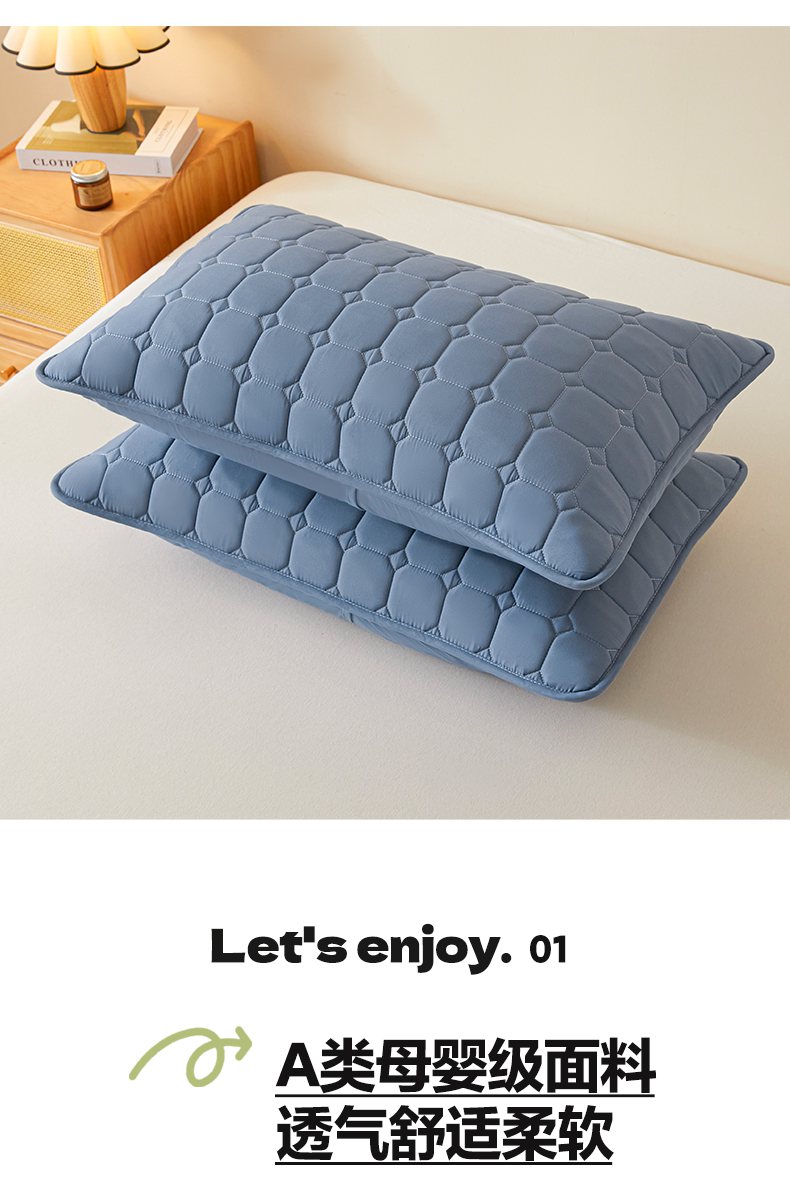 商品名称:芬晴家纺 2025新款A类母婴级防水枕套系列 简格-雾蓝