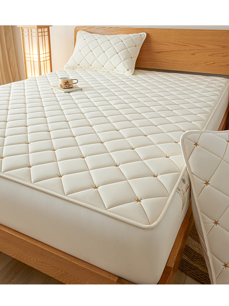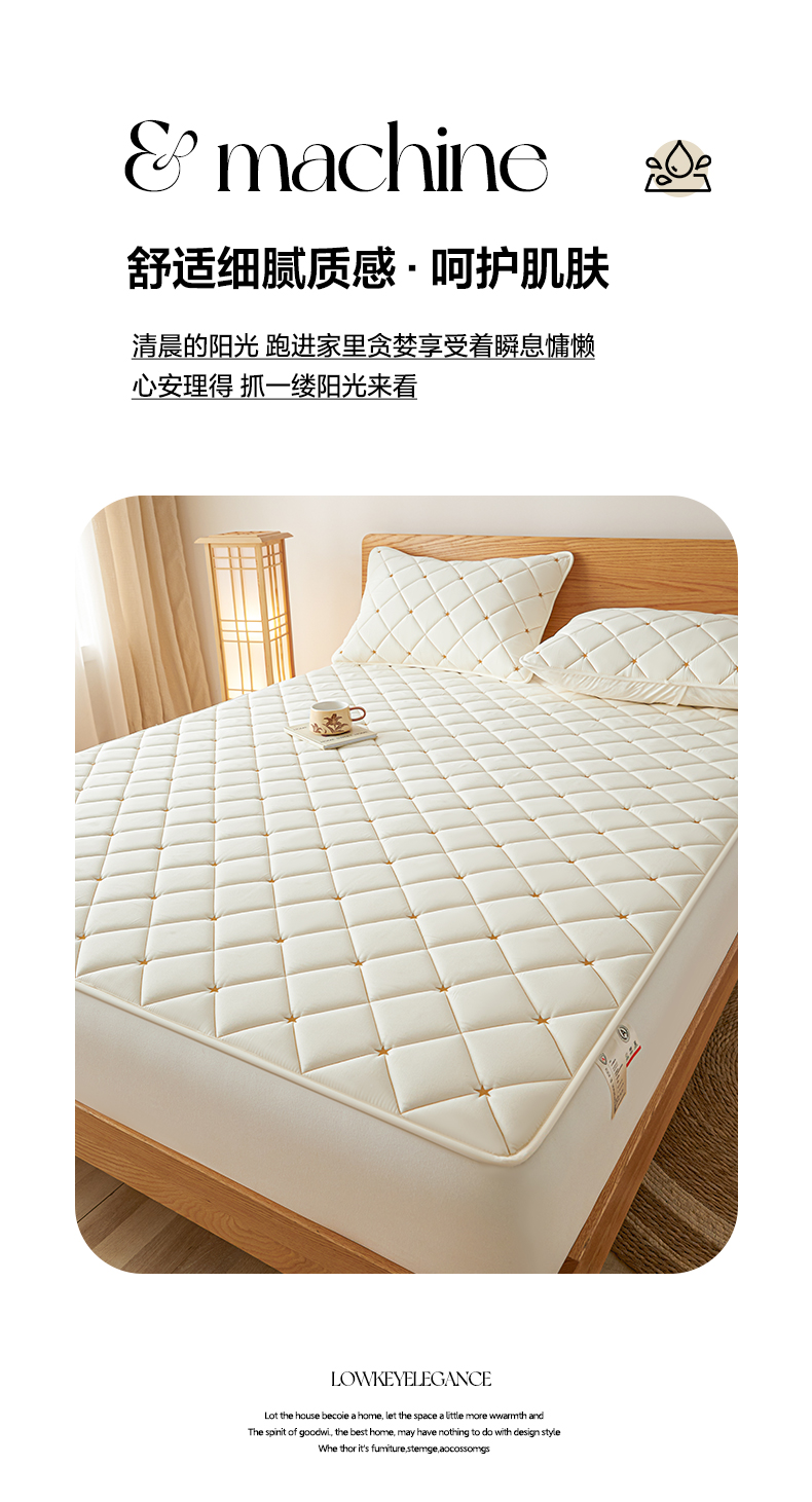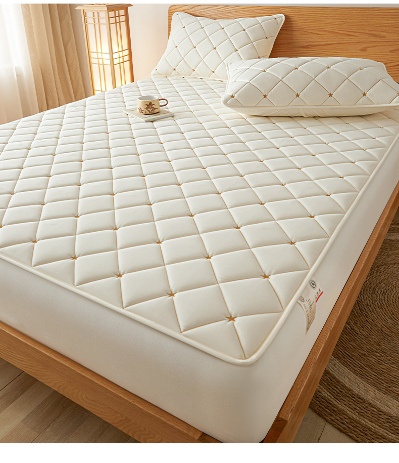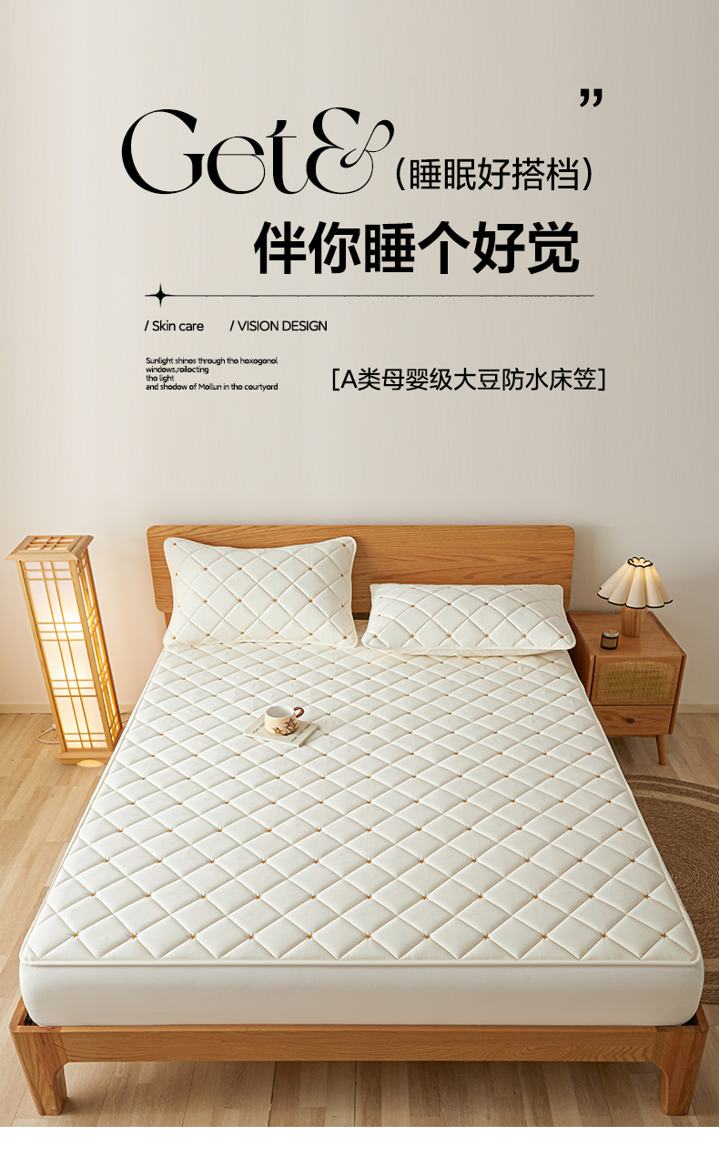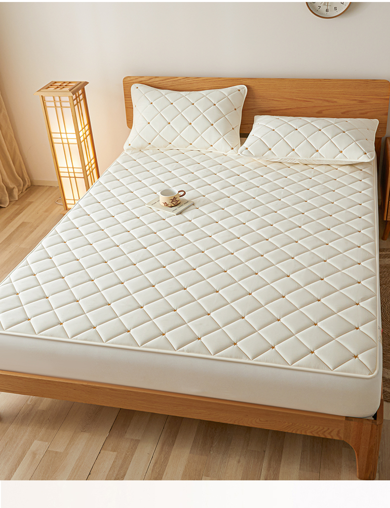 • 91家纺网 家纺一手货源 找家纺 芬晴家纺 2025新款A类母婴级大豆防水夹棉床笠-简爱-空间 空间-米白