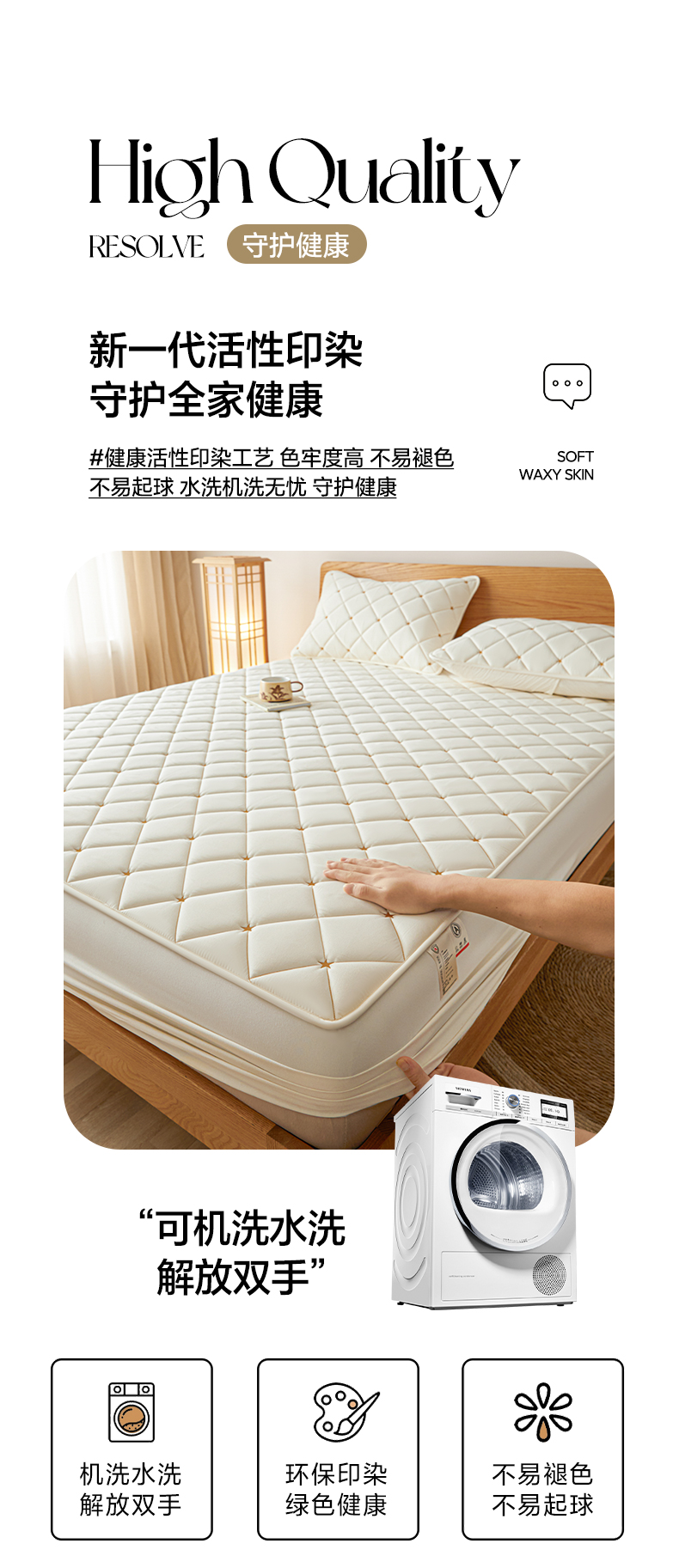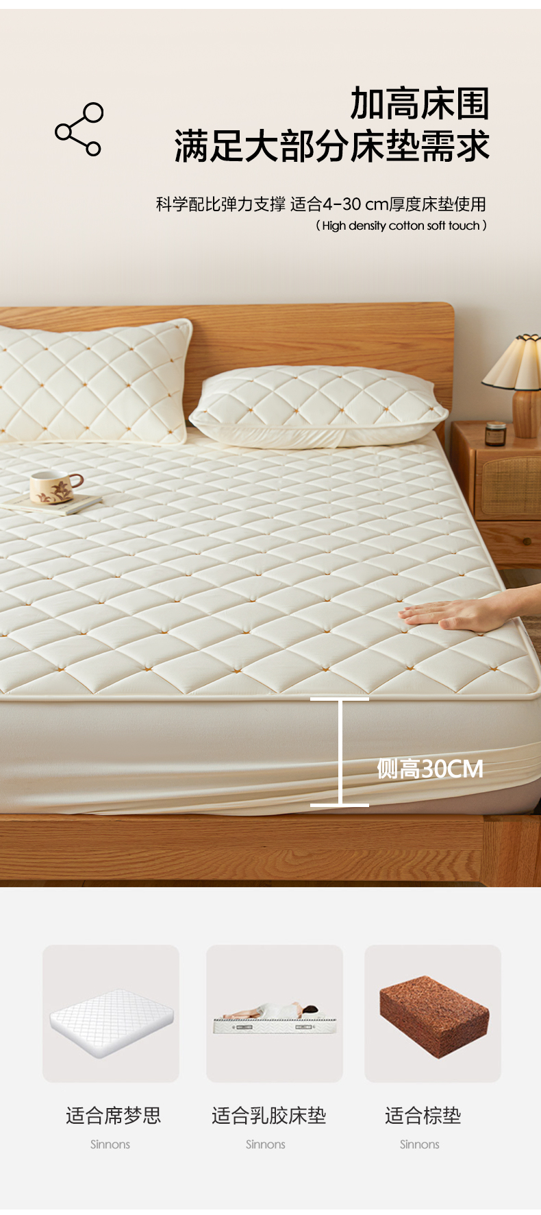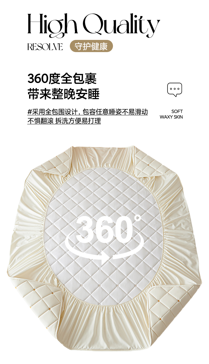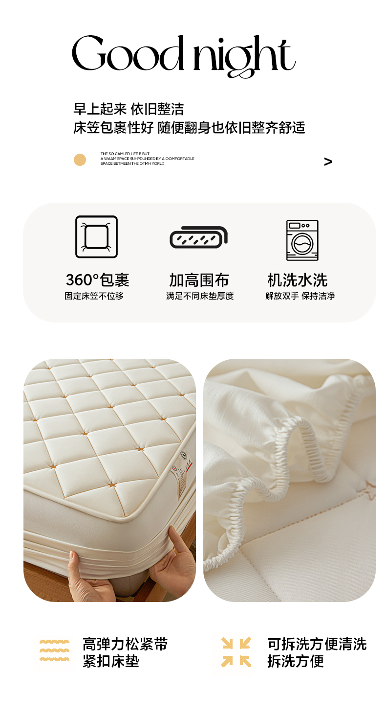 • 91家纺网 家纺一手货源 找家纺 芬晴家纺 2025新款A类母婴级大豆防水夹棉床笠-简爱-空间 空间-米白
