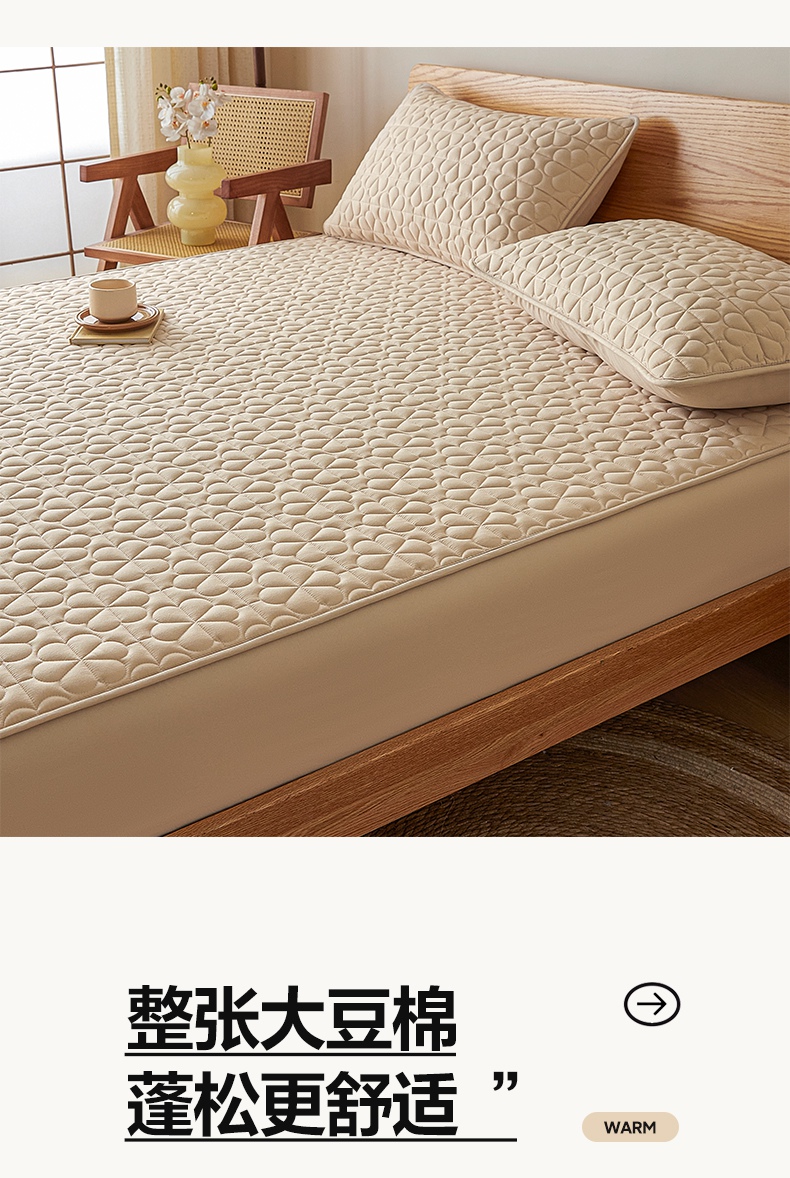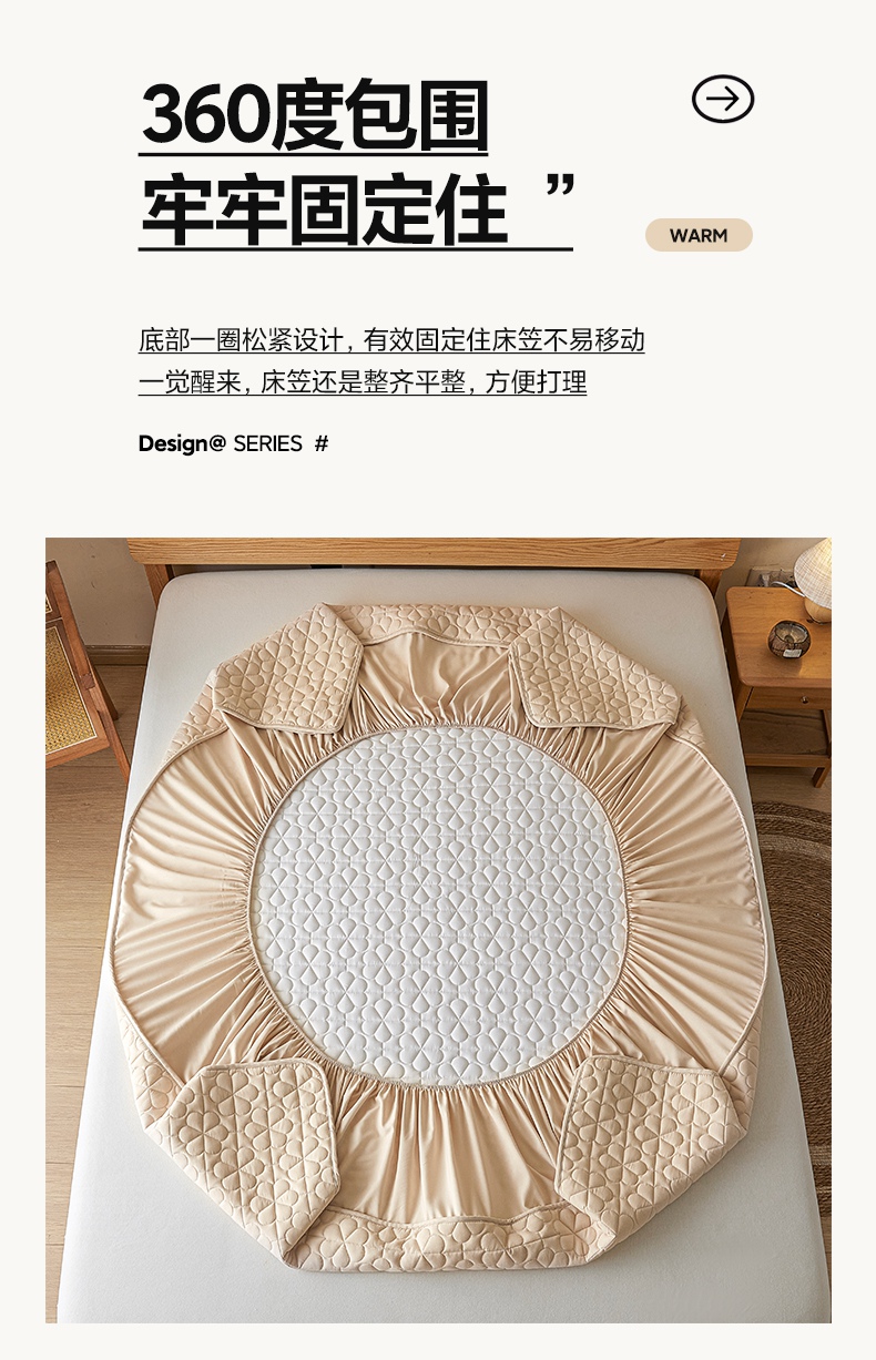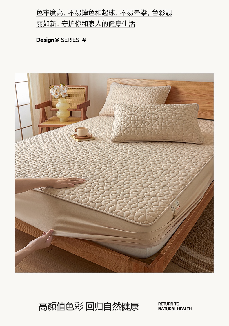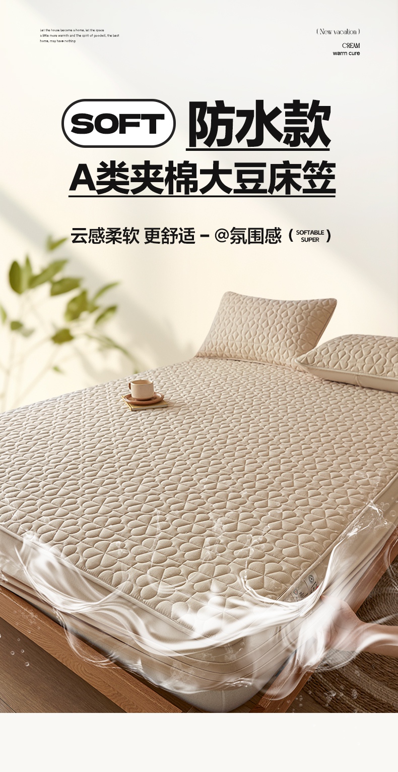 • 91家纺网 家纺一手货源 找家纺 芬晴家纺 2025新款A类母婴级大豆防水夹棉床笠系列-约定-心动-繁花 繁花-卡其