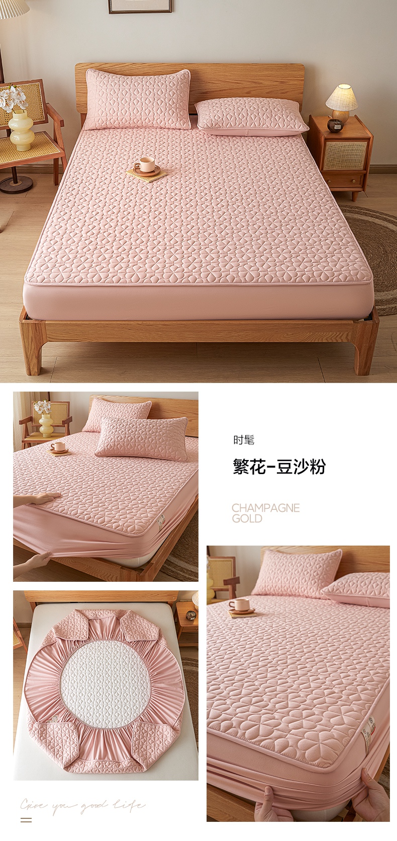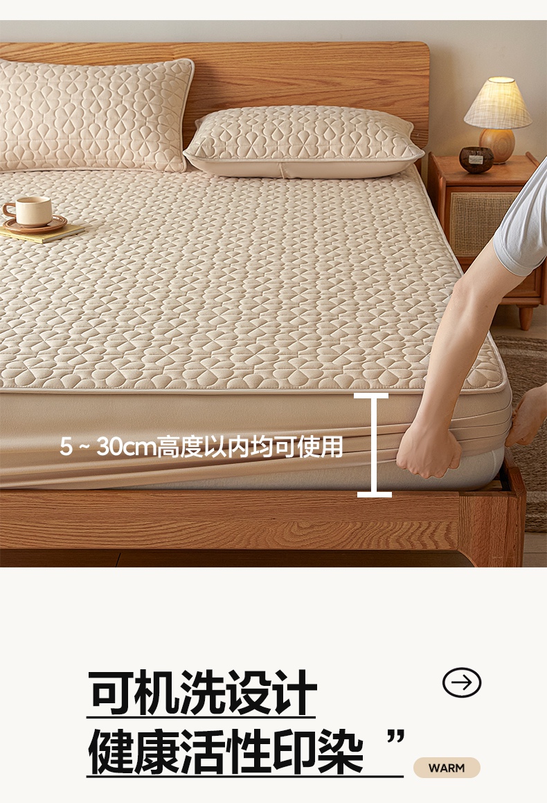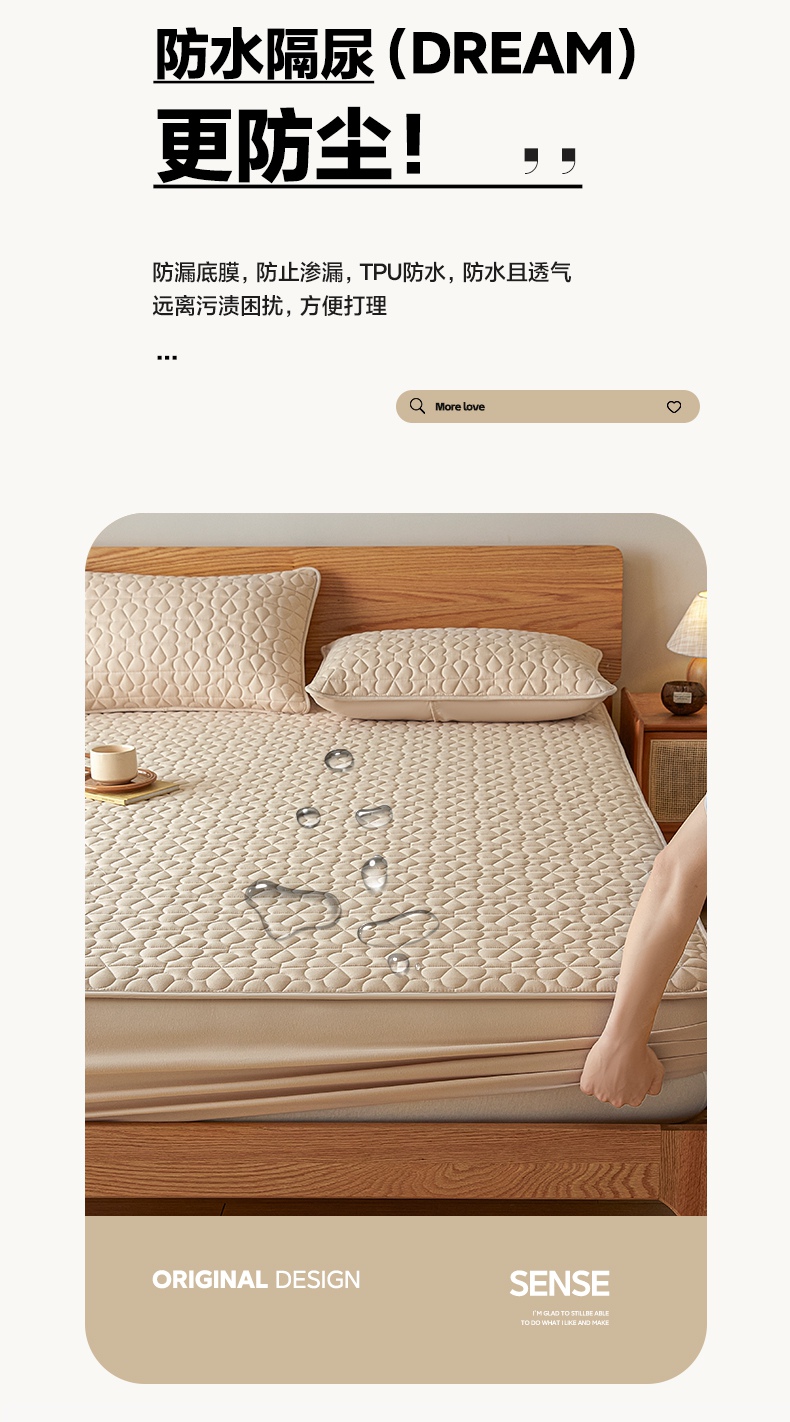 • 91家纺网 家纺一手货源 找家纺 芬晴家纺 2025新款A类母婴级大豆防水夹棉床笠系列-约定-心动-繁花 繁花-卡其