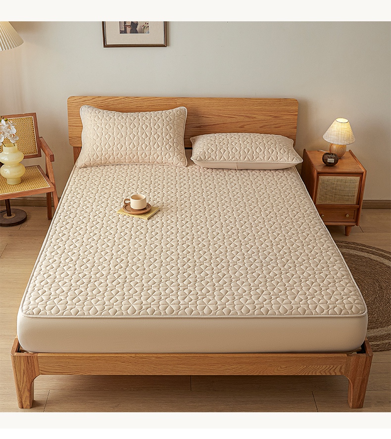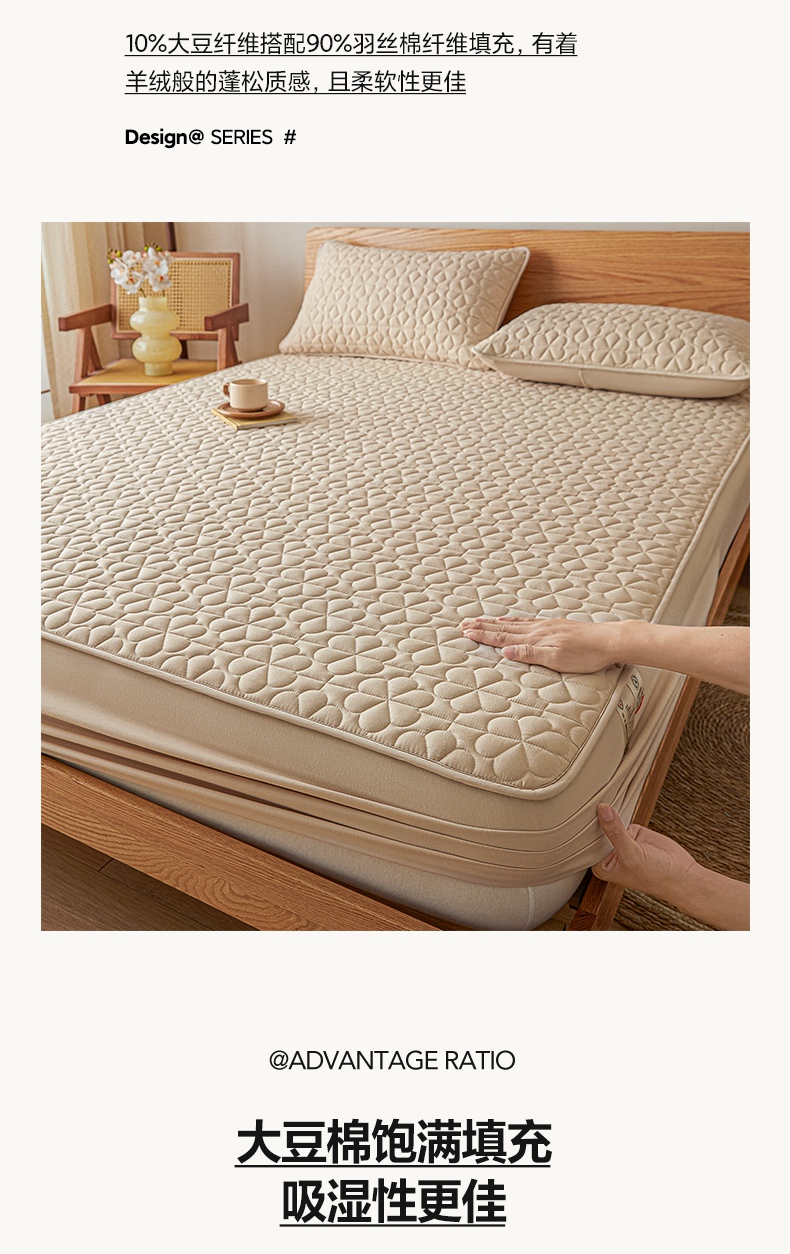 芬晴家纺 2025新款A类母婴级大豆防水夹棉床笠系列-约定-心动-繁花 繁花-卡其