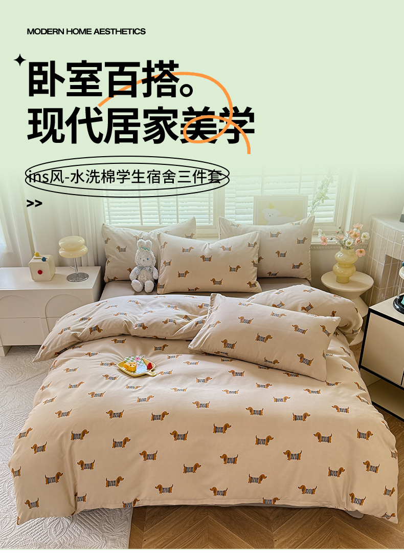 当前位置: 91家纺网 > 商品网购 > 床品套件 > 三件套 > 多品家纺 2025新款ins风水洗棉学生宿舍三件套 复古狗