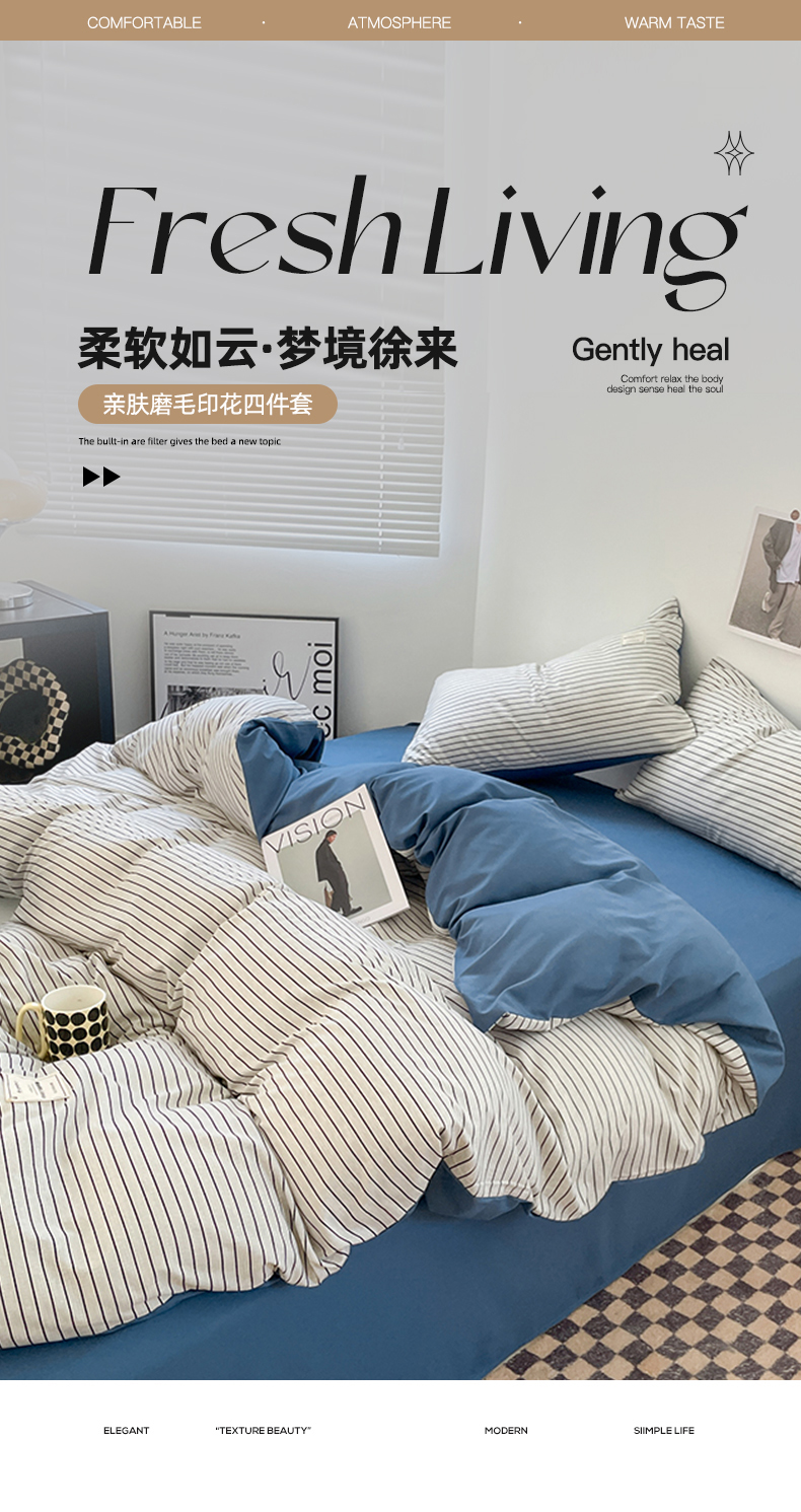 当前位置: 91家纺网 > 商品网购 > 床品套件 > 四件套 > 普通磨毛四件套 > 优尚佳生活馆 2025新款无印风亲肤磨毛四件套-格子 玉小格