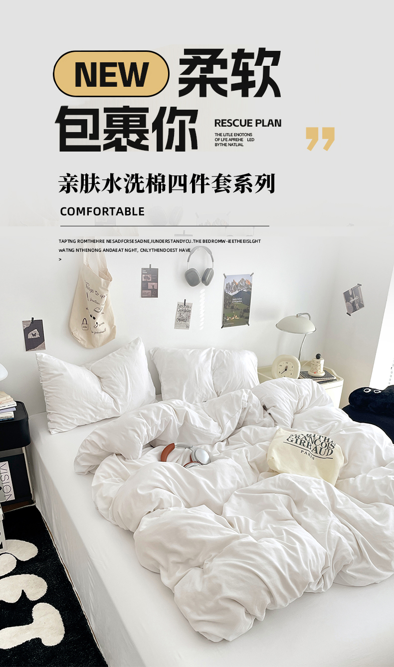 当前位置: 91家纺网 > 商品网购 > 床品套件 > 四件套 > 水洗棉四件套 > 优尚佳生活馆 2025新款INS风亲肤水洗棉四件套系列-纯色 云朵白