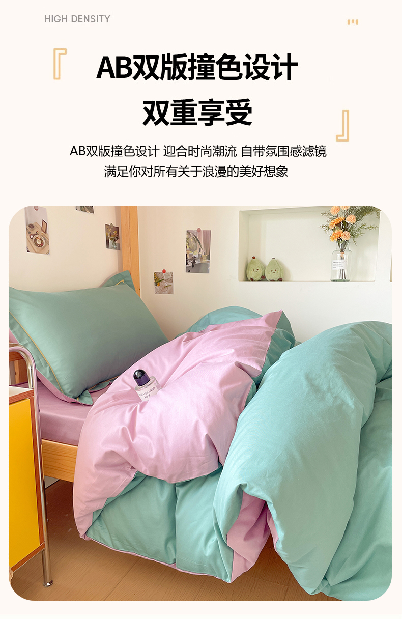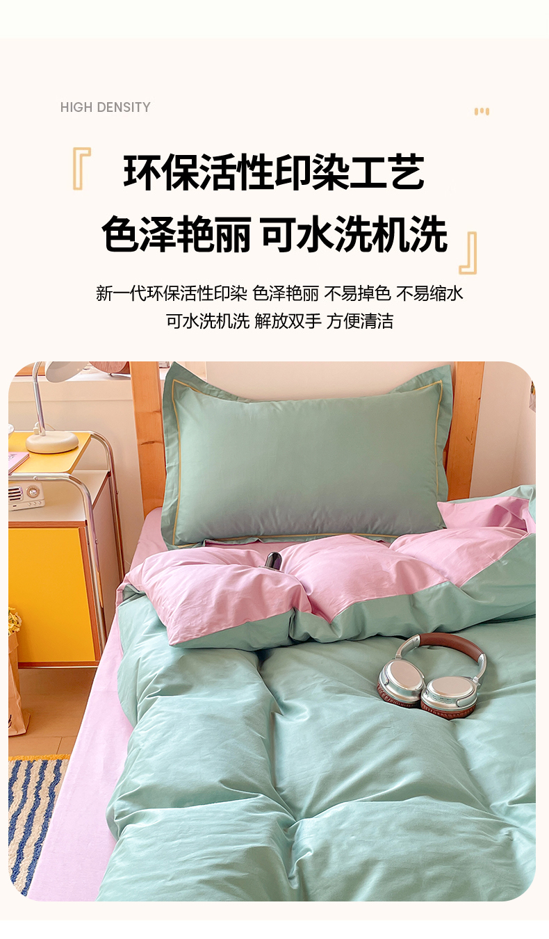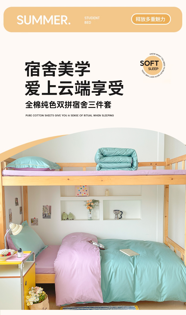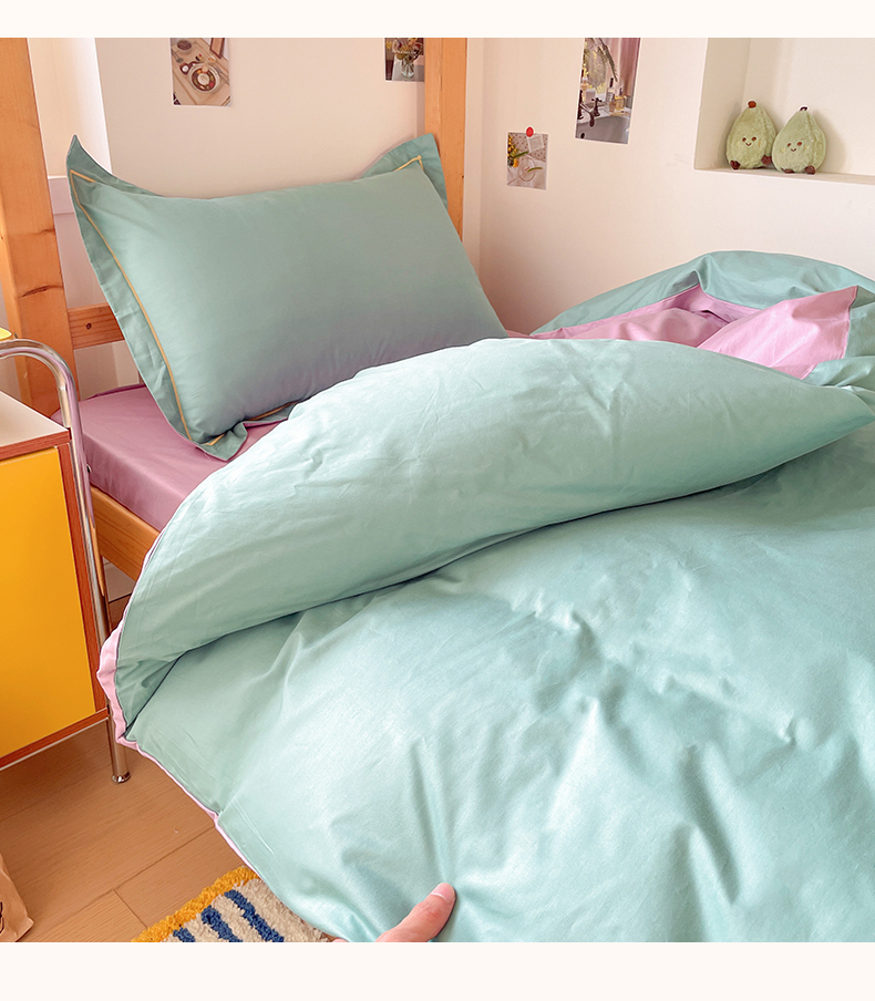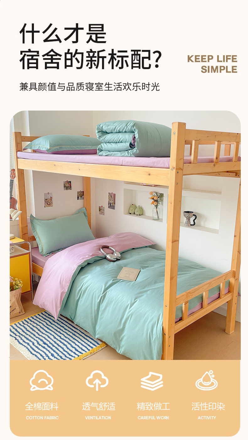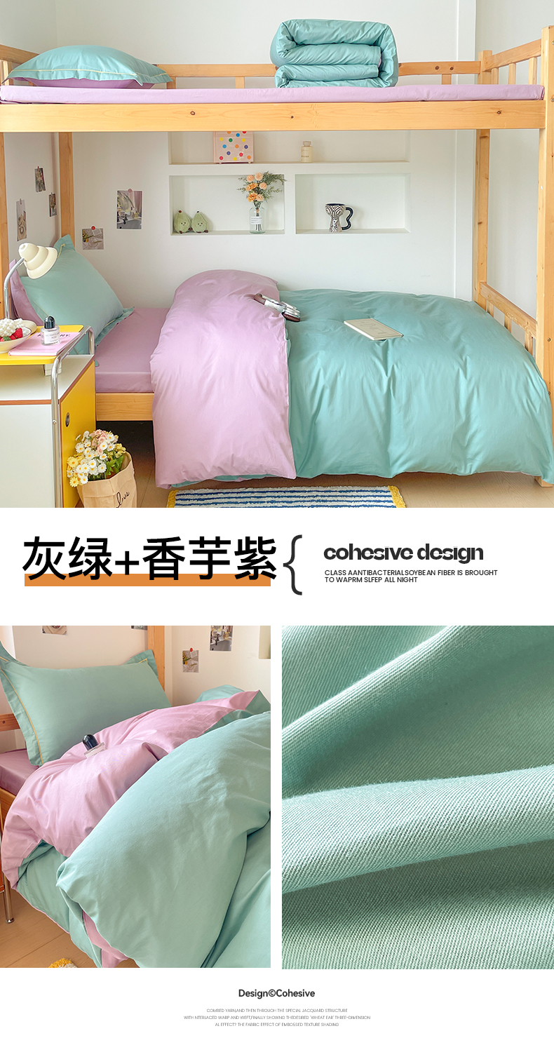 商品名称:恩泽家纺 2025新款全棉双拼学生宿舍三件套 灰绿+香芋紫