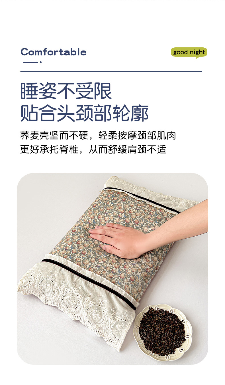 商品名称:(总)梦莱家纺 2025新款全荞麦壳枕芯巴赛罗那枕芯加全棉枕套可拆洗枕头