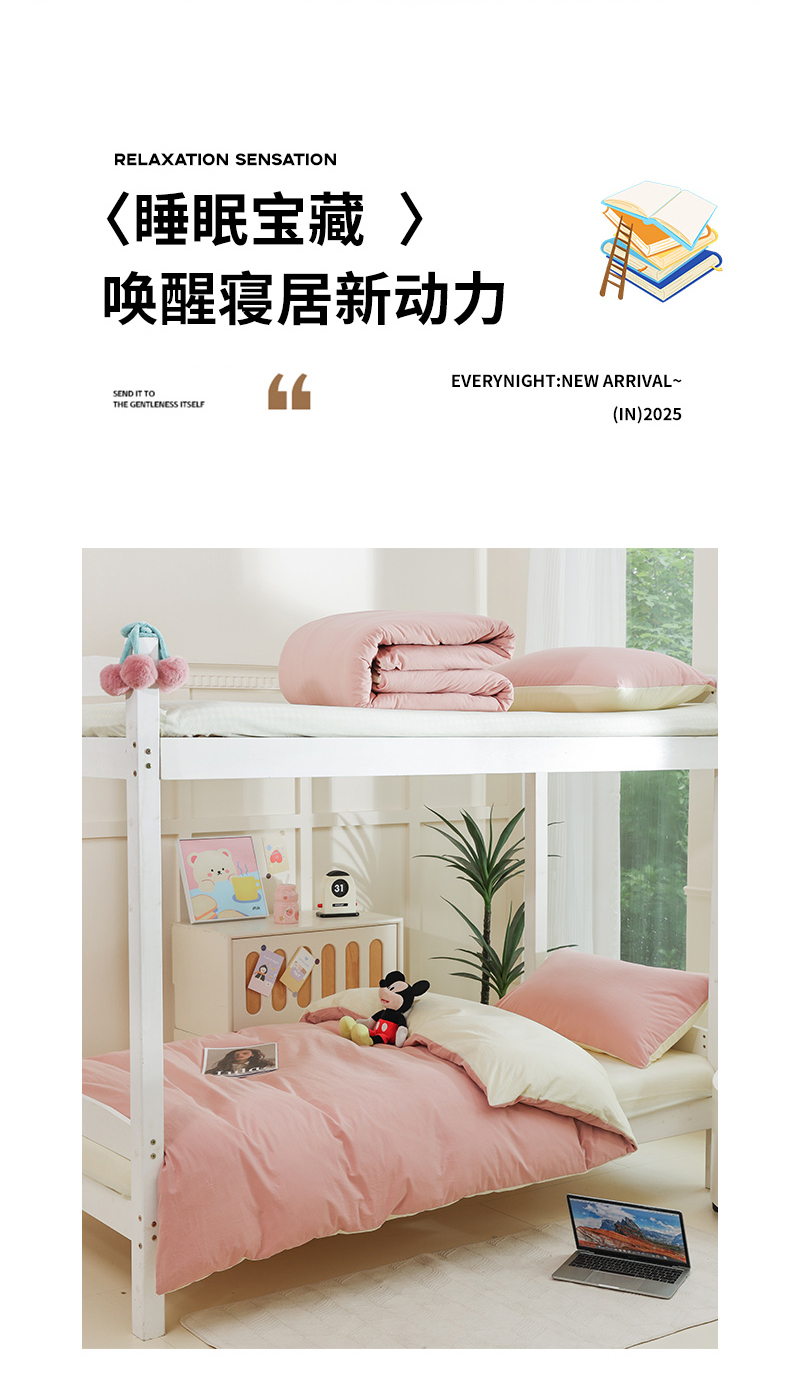 当前位置: 91家纺网 > 商品网购 > 床品套件 > 三件套 > 柠萌家居 2025新款无印良品风色织水洗棉A类学生宿舍三件套 豆沙+奶黄