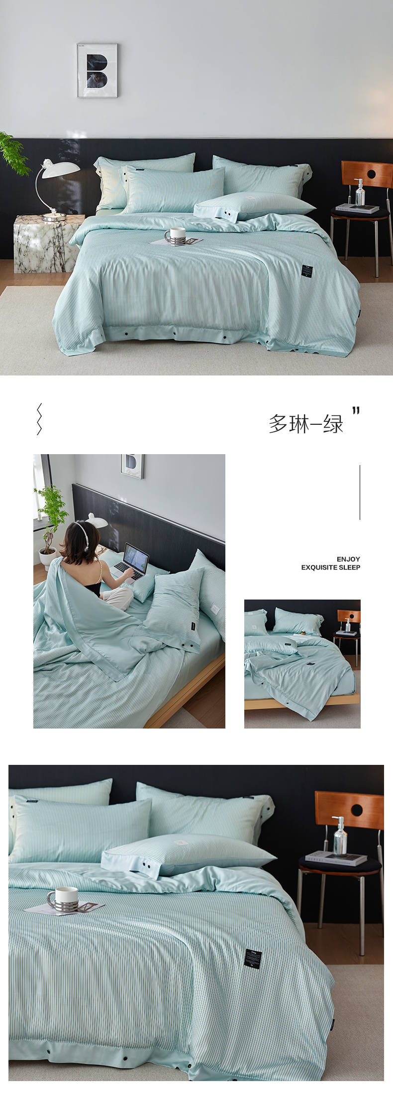 安莱生活 2025年新款60支兰精天丝数码印花条纹时尚款四件套 多琳-绿