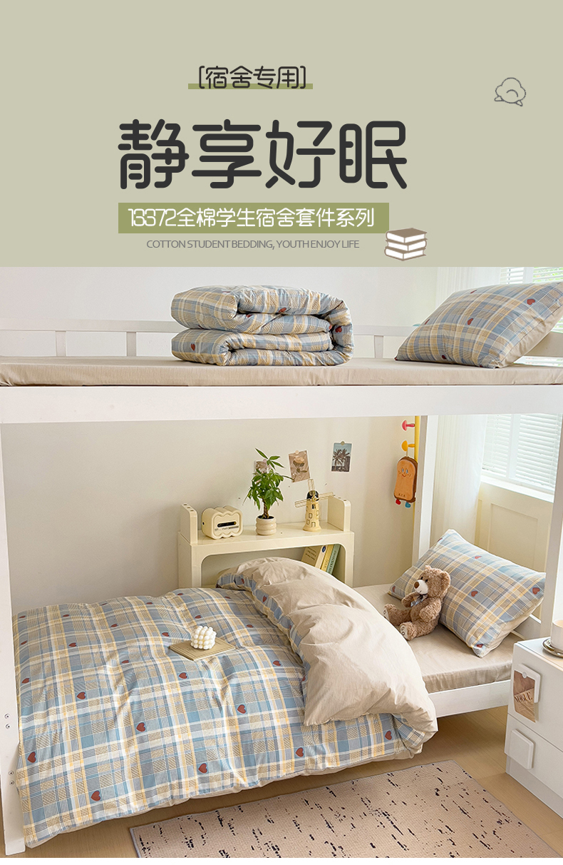 当前位置: 91家纺网 > 商品网购 > 床品套件 > 三件套 > 麦伦家居 2025新款40支13372全棉纯棉斜纹学生上下铺床品宿舍三件套上下铺四件套系列 律动蓝