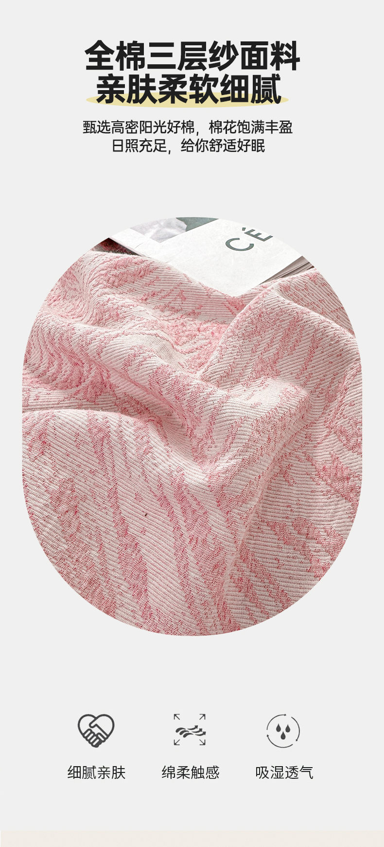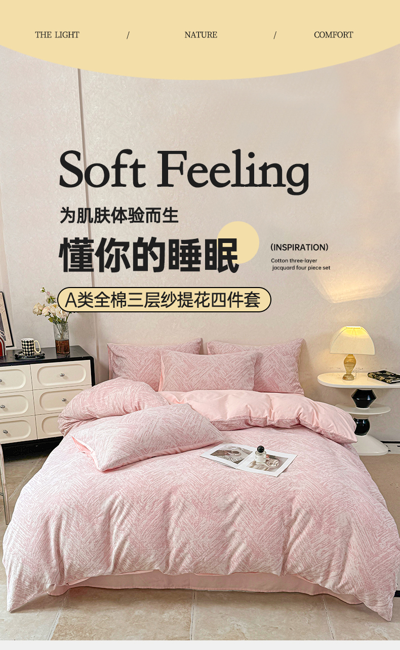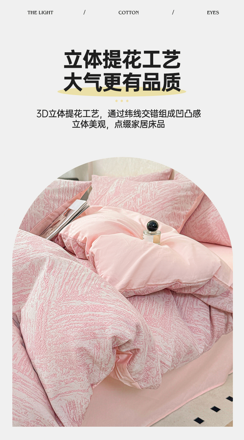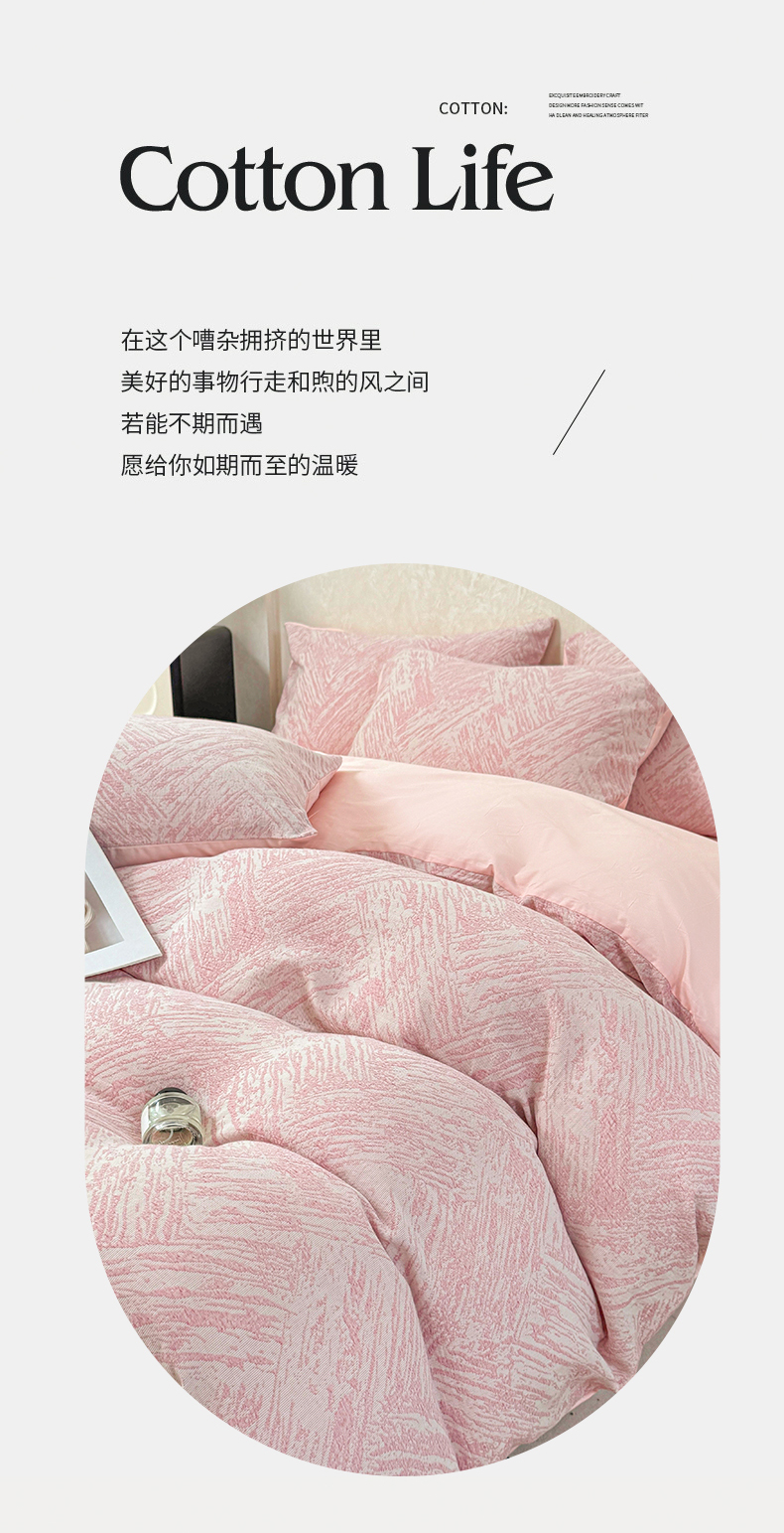 当前位置: 91家纺网 > 商品网购 > 床品套件 > 四件套 > 色织四件套 > 灰鲸2025新款A类全棉三层纱色织提花系列四件套 本色-粉