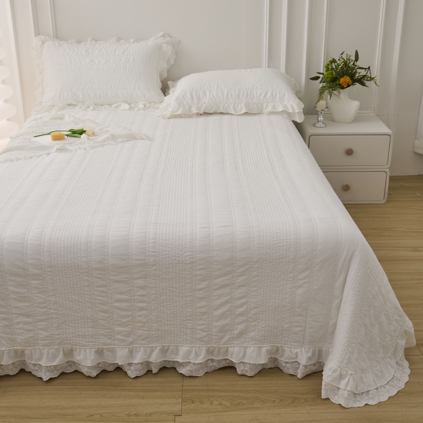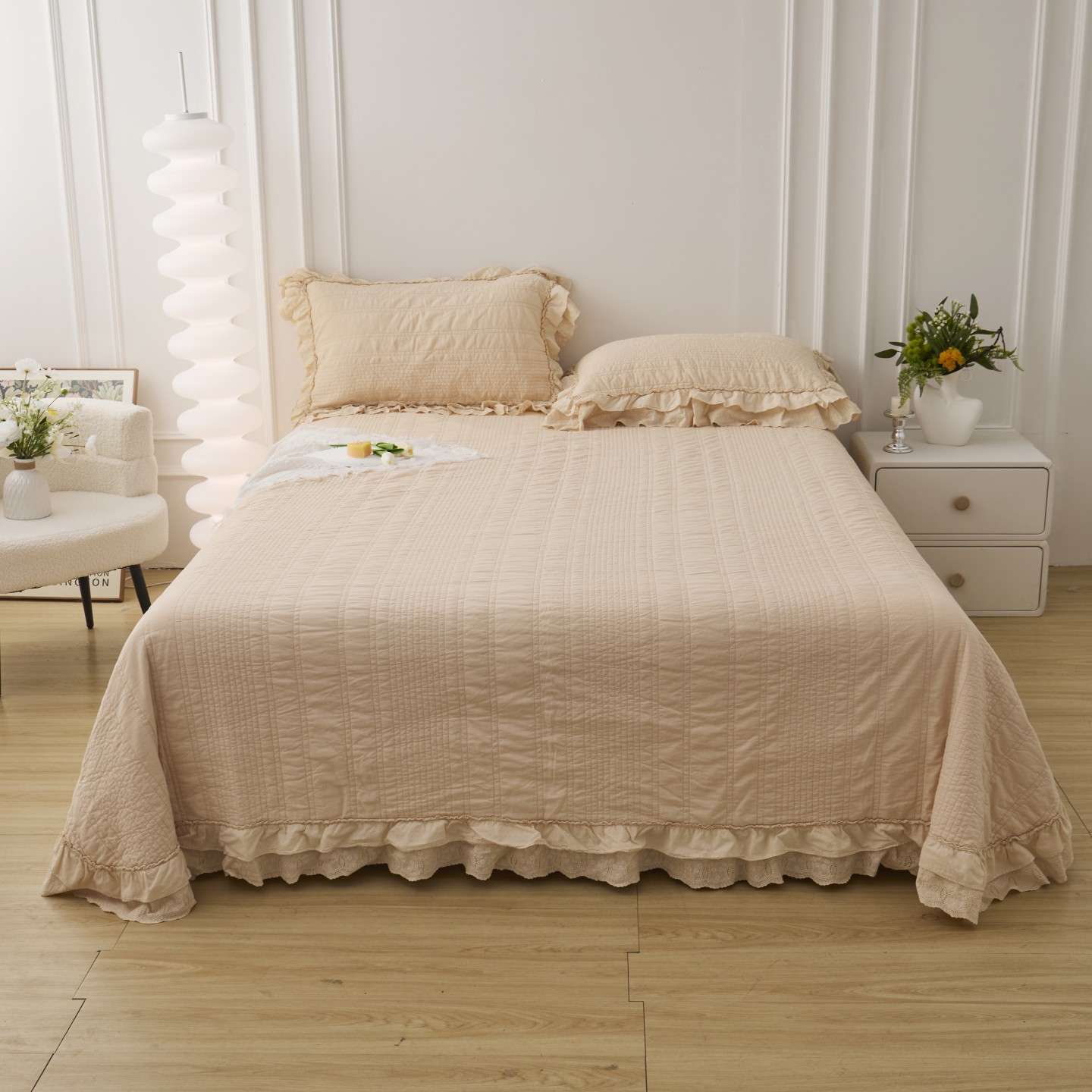 (总)上喜 2025新款全棉砂洗床盖新升级第五代,白色,湖蓝,奶油米,深灰,深咖